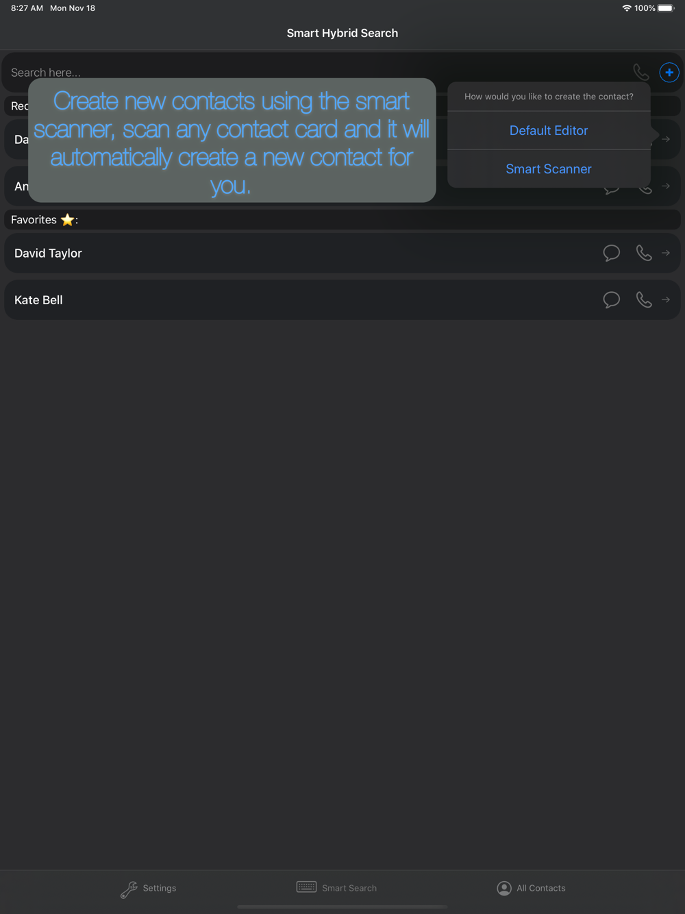 - Scan and automatically create new contacts just by pointing your camera at a contact card.