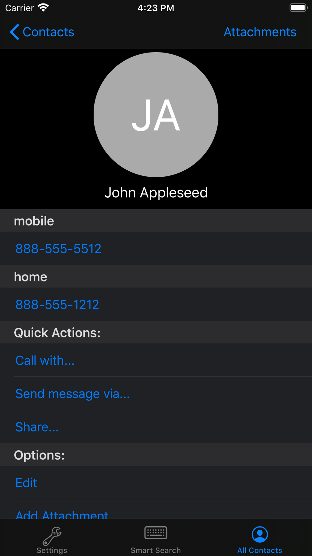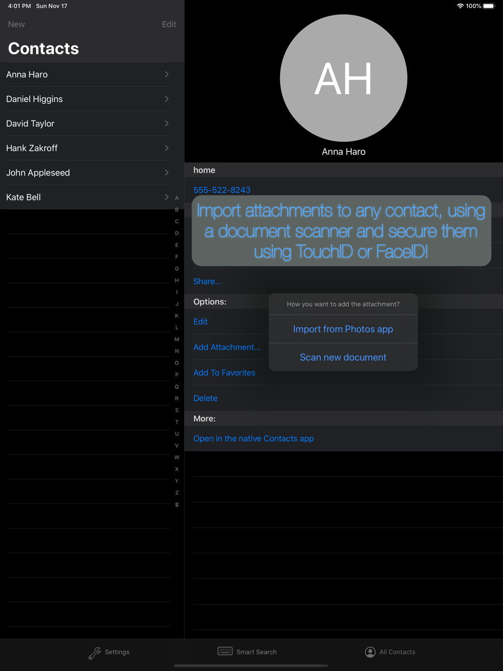 - Add Attachments to individual contacts, and hide them using Biometrics (FaceID or TouchID)!