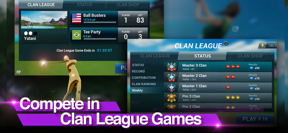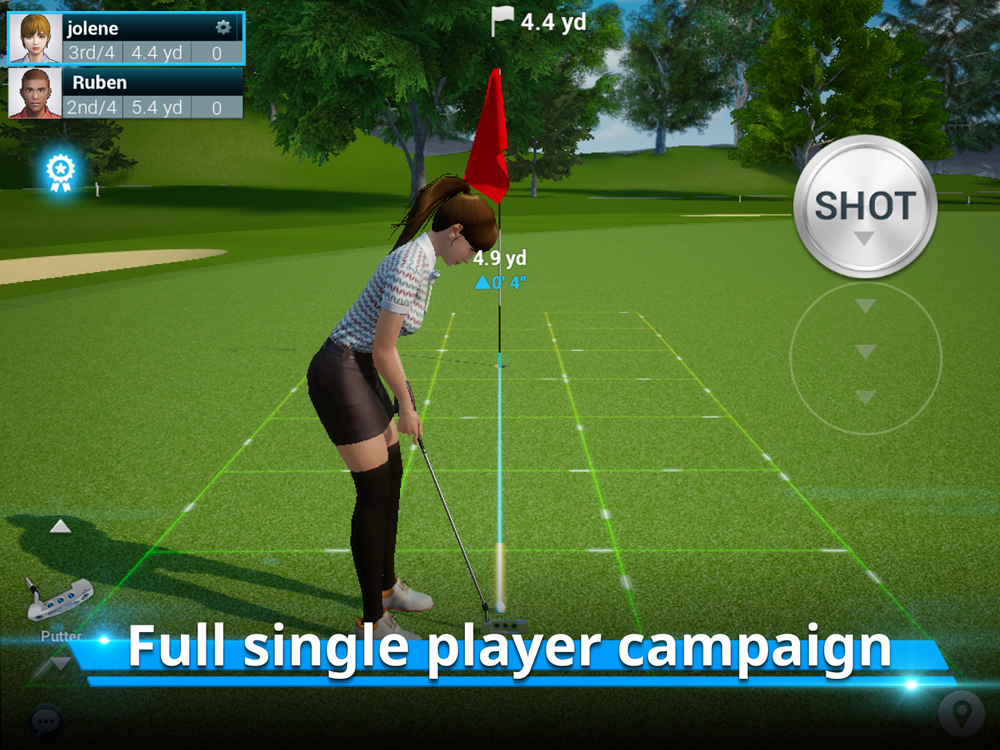 - Compete in real-time multiplayer games against golfers from all around the world in Match play.
