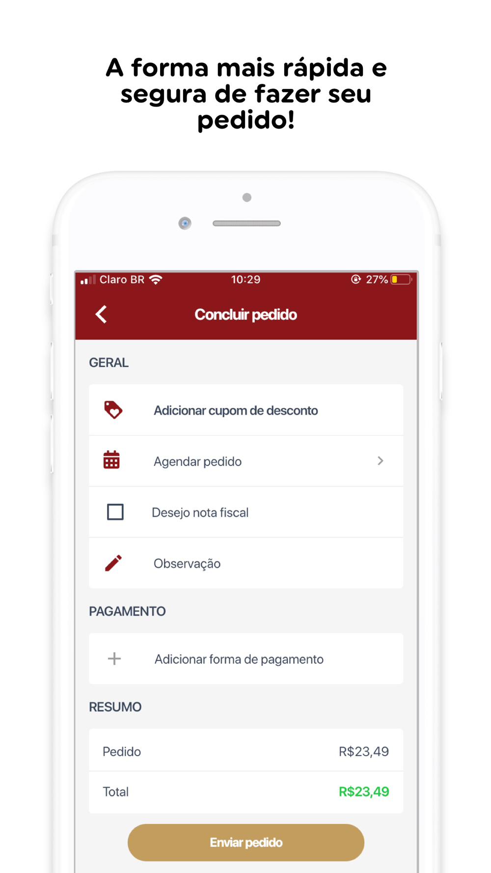 No app, você encontra de forma rápida o cardápio completo e ainda pode utilizar a ferramenta de busca para localizar diretamente os produtos que você deseja.