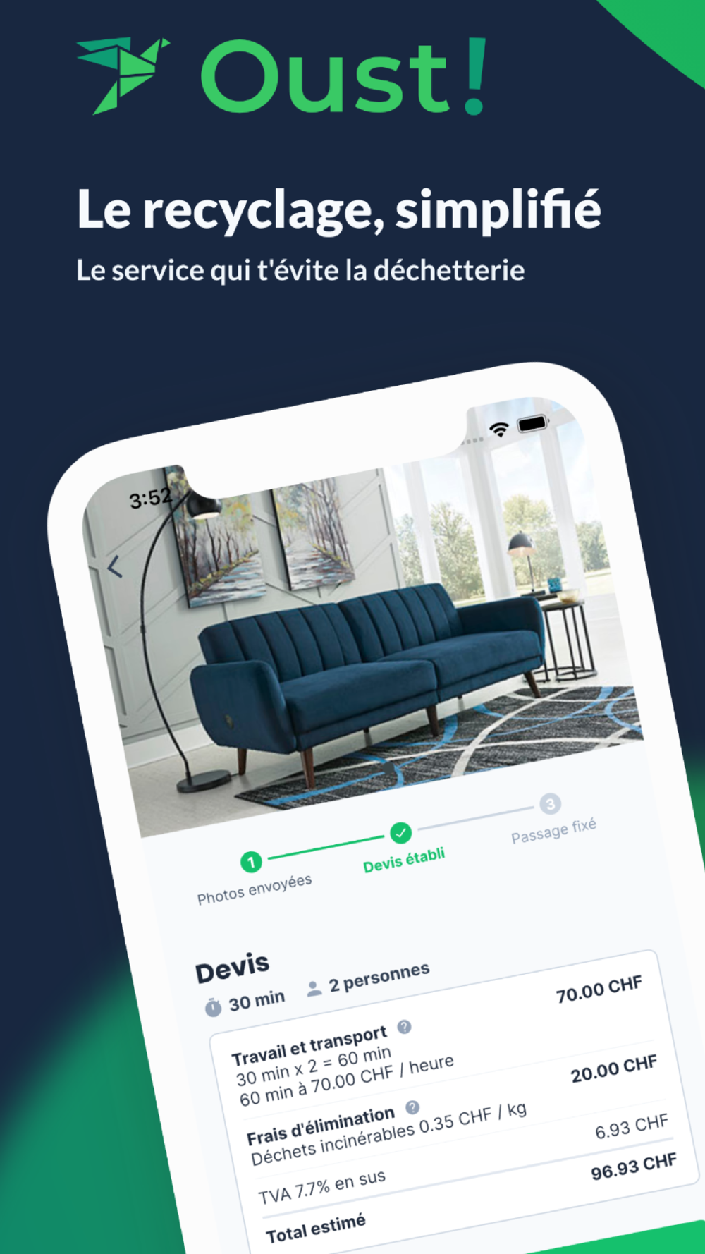 - Abonnements: collecte des tes déchets recyclables à domicile. Oust! passe chez toi toutes les 4, 2 ou 1 semaines vider tes caisses de tri. Tu reçois un SMS avant notre passage et n'as plus à te soucier de la déchetterie.