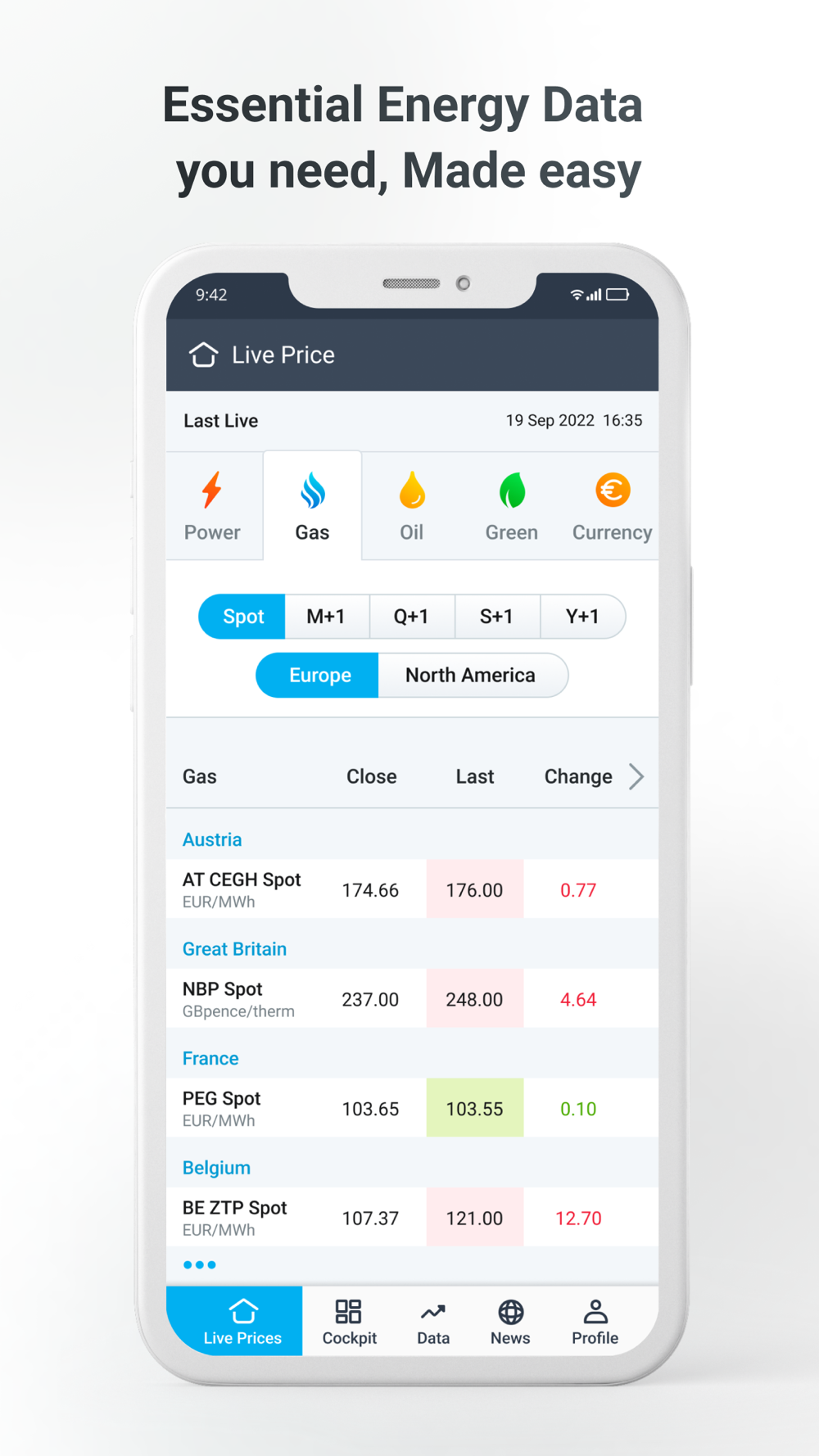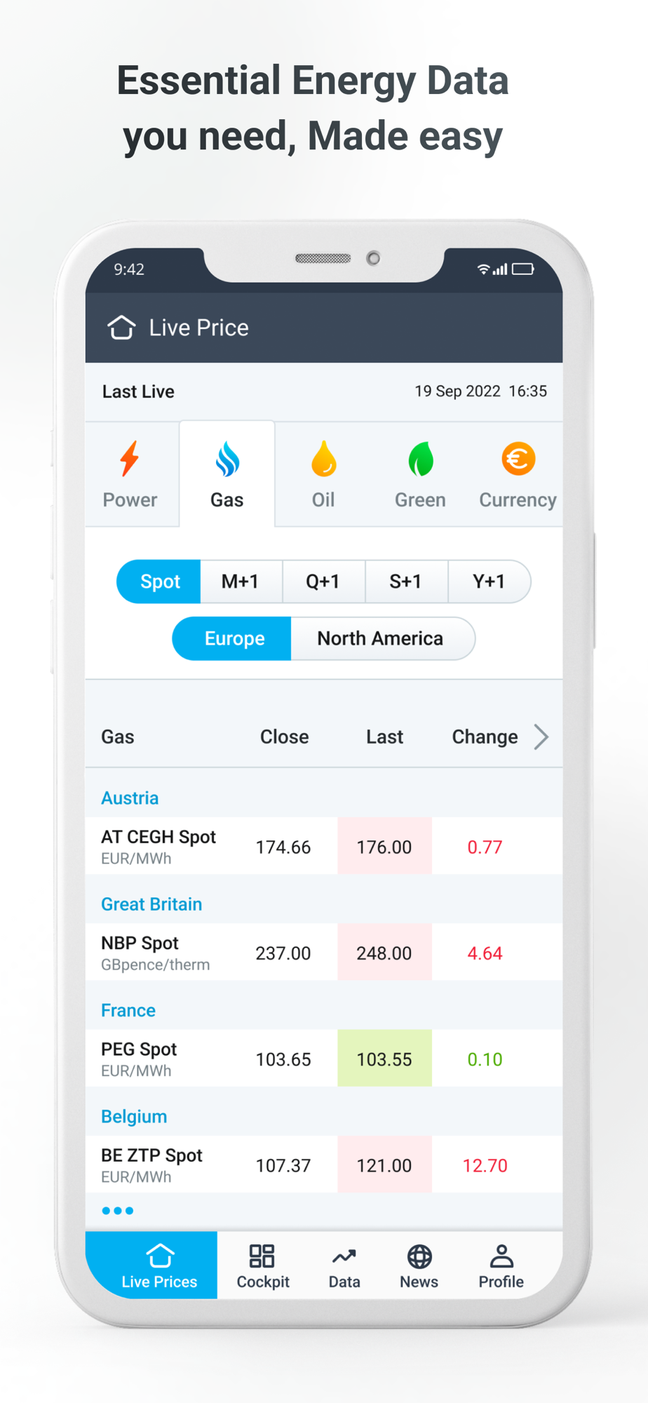 The free demo doesn’t require user registration on the App mobile and will give access to a limited number of energy market prices and functions.