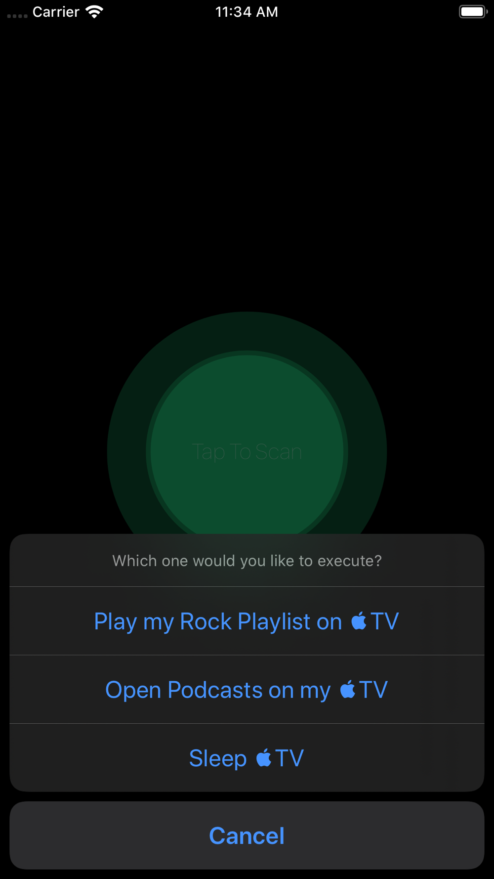 Put a NFC Tag on your television or Apple TV to turn it on, open a specific app, resume a show, play any song, playlist or podcast, or even turn it off.