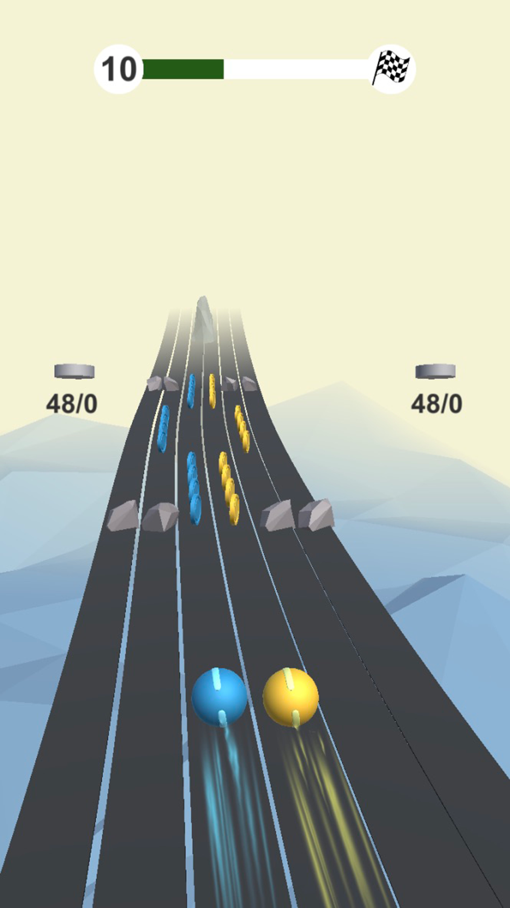 Rocknball is a game with multiple levels where each one has a different style and difficulty. You control two balls by swiping up or down to move them away from each other or vice versa. To pass the level the player needs to overcome different obstacles and collect coins.