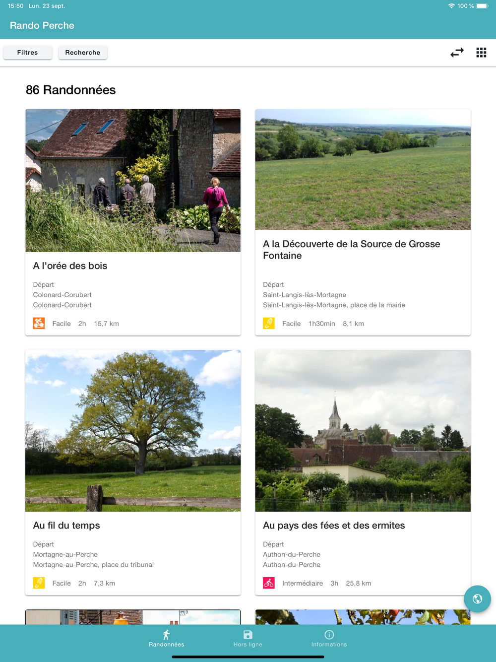 Avec cette application mobile conçue par le Parc naturel régional du Perche, embarquez en un clic les circuits de nos plus belles randonnées : pédestre, VTT, cyclotourisme, marche nordique…