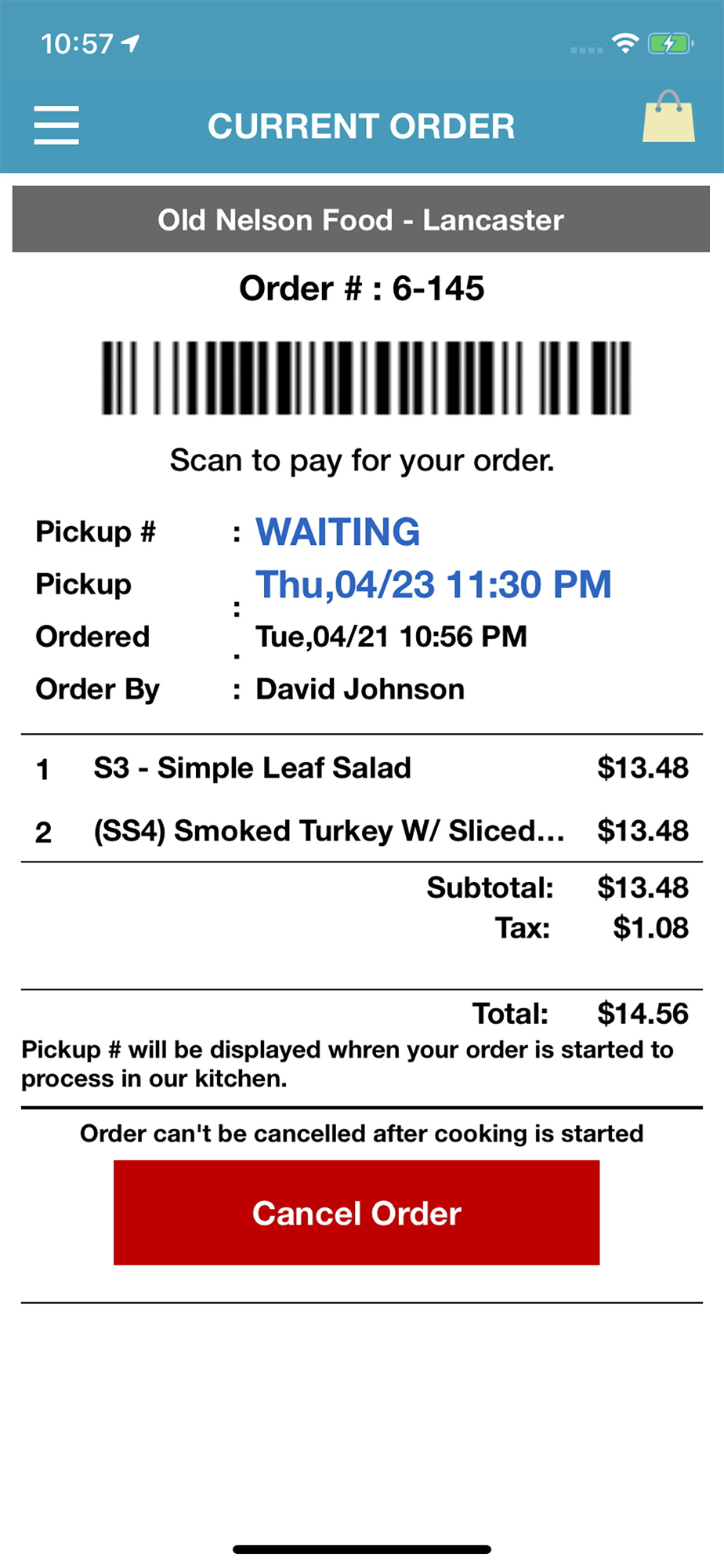 3. When paying for your order, you can show the Current Order screen on the app or provide your name and/or phone number to the cashier.