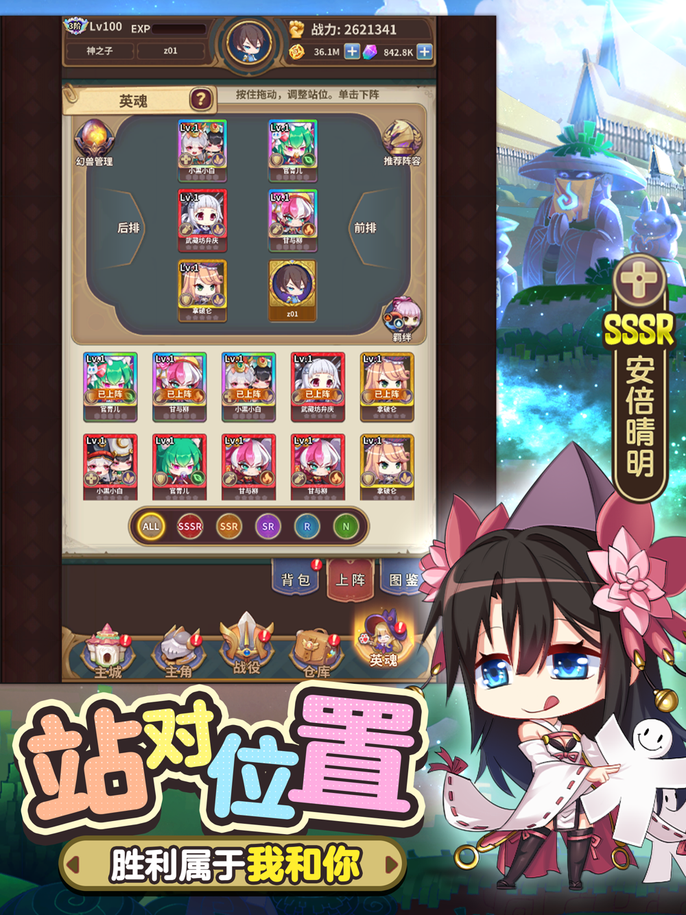 世界经典历史人物化身美少女英魂帮助玩家拯救世界,亚瑟王、查理曼大帝、明智光秀、织田信长等英雄全任你指挥。极稀有的英魂还能觉醒变身,蜕变力与美兼具的炫目外观,使人不禁想把她们全部招入麾下!