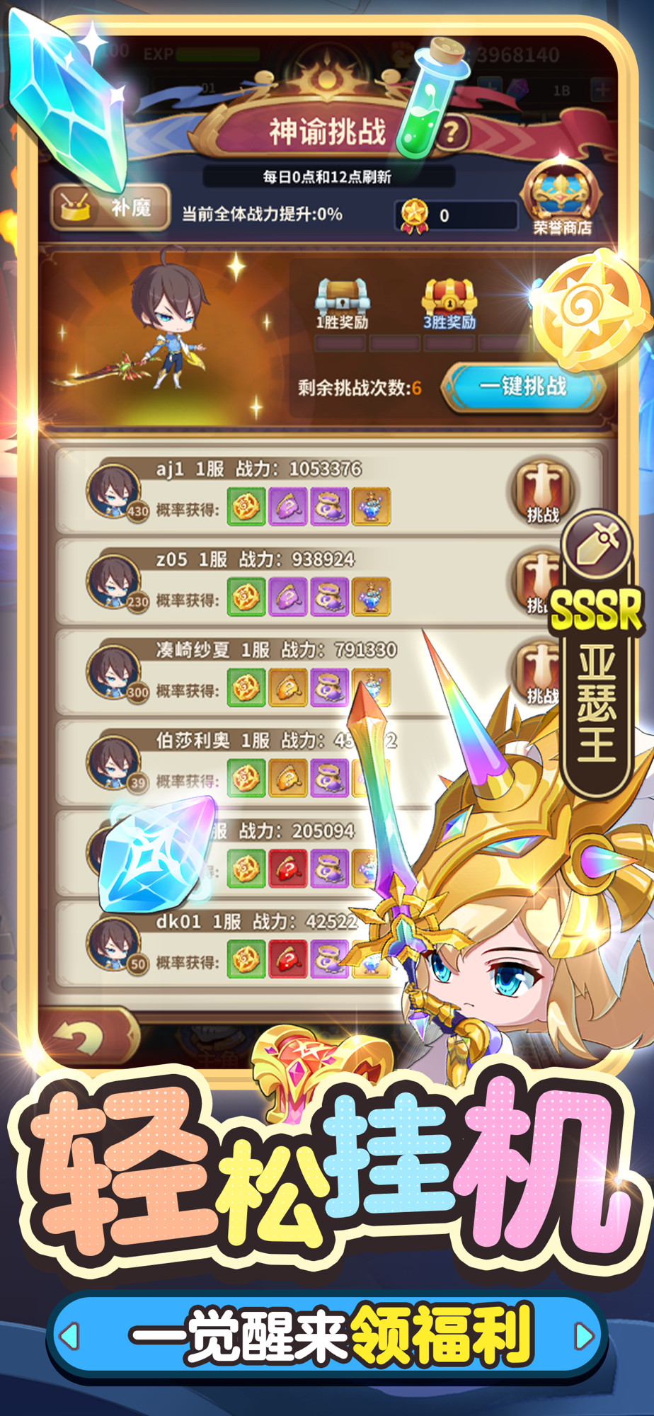 无需全天候待命,闲暇之时上线就能收获3SR超稀有英魂碎片及高额奖励。反应慢也没关系,《城堡奇兵》无需电竞选手的操作,只需动动手指,英魂技能自动施放,简单通关获奖励。