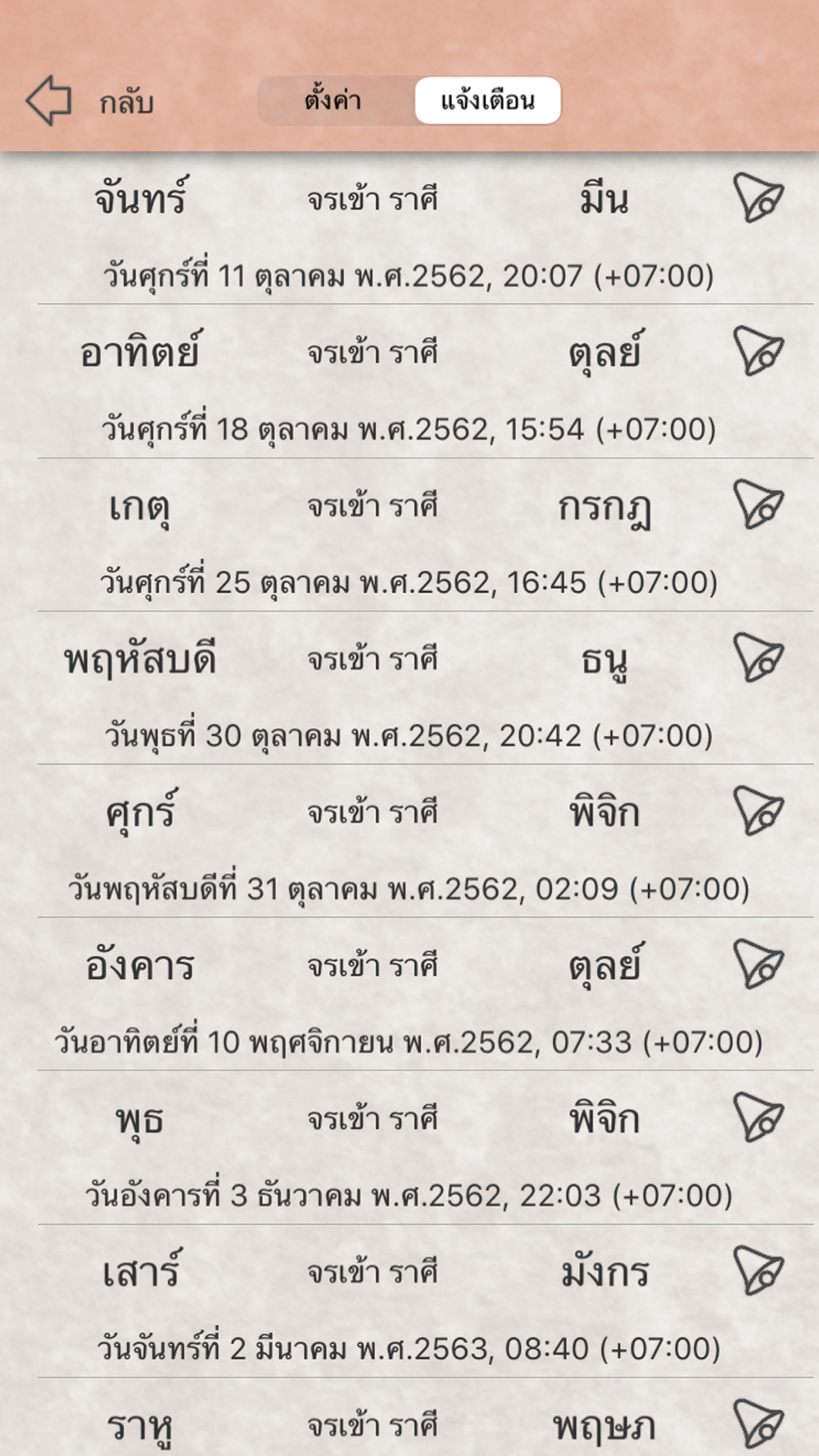 แจ้งเตือน วันเวลาที่ดวงดาวย้ายราศี