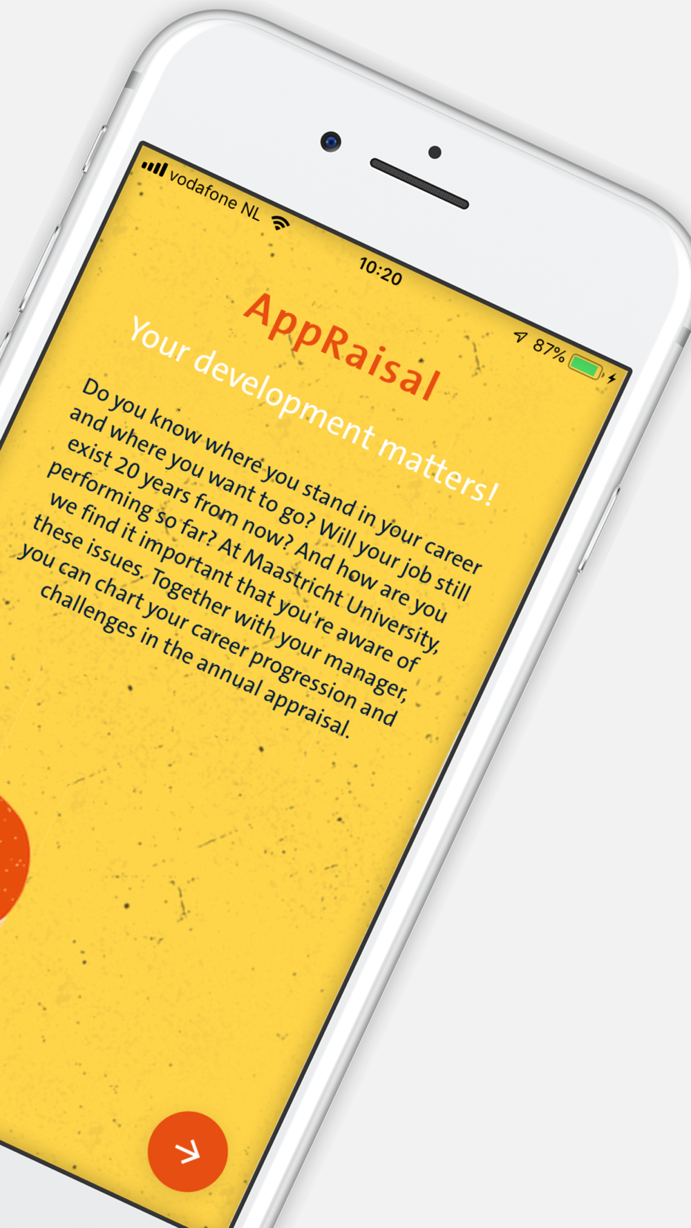 The annual appraisal is a dialogue between you and your manager structured around four themes: looking back, looking ahead, your short-term development and your long-term development. You can use this app to record during the year how you are doing.