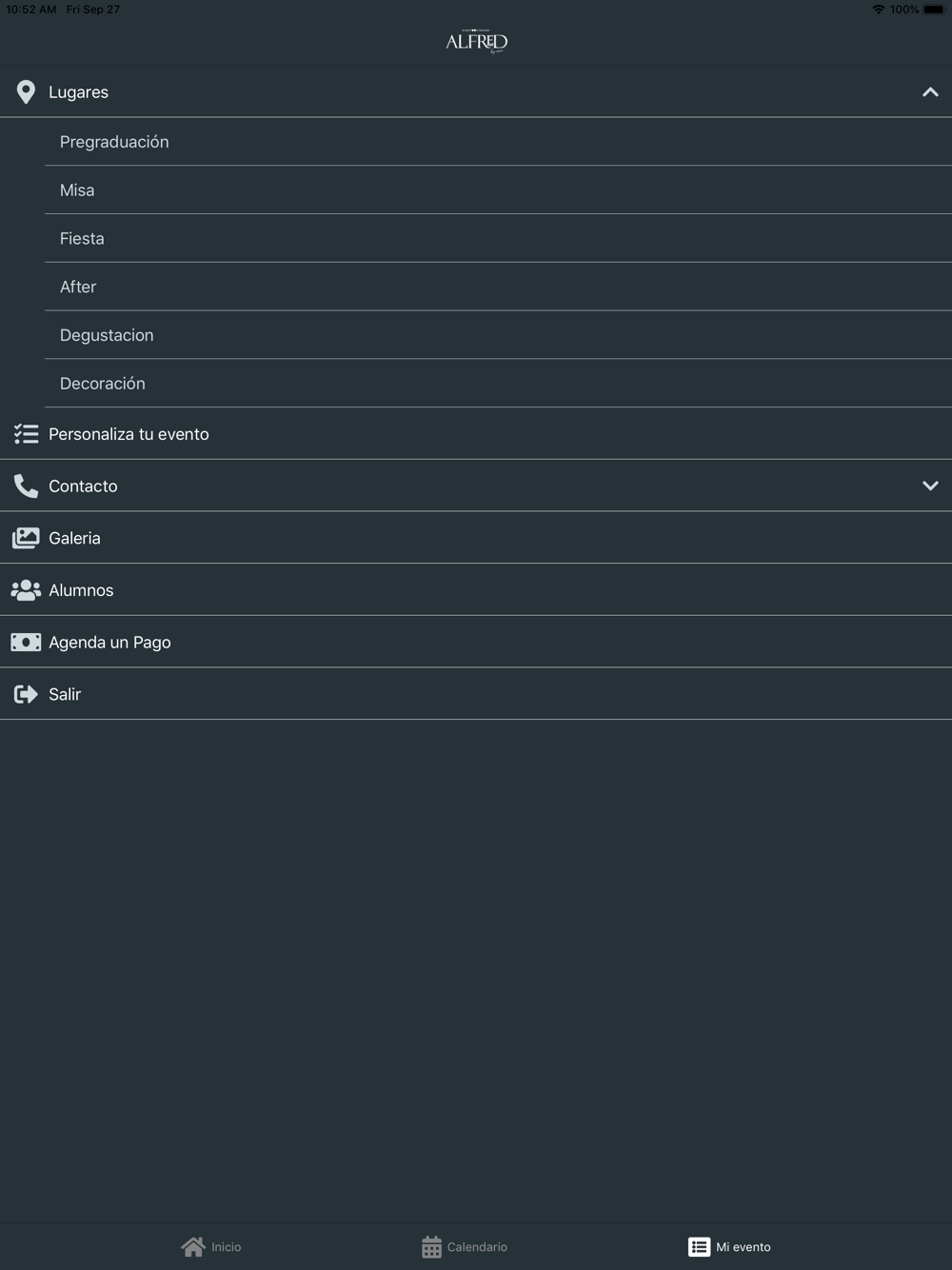 ALFRED te brindara asistencia a lo largo de la planeación de todo tu evento, tendrás acceso a diferentes categorías: