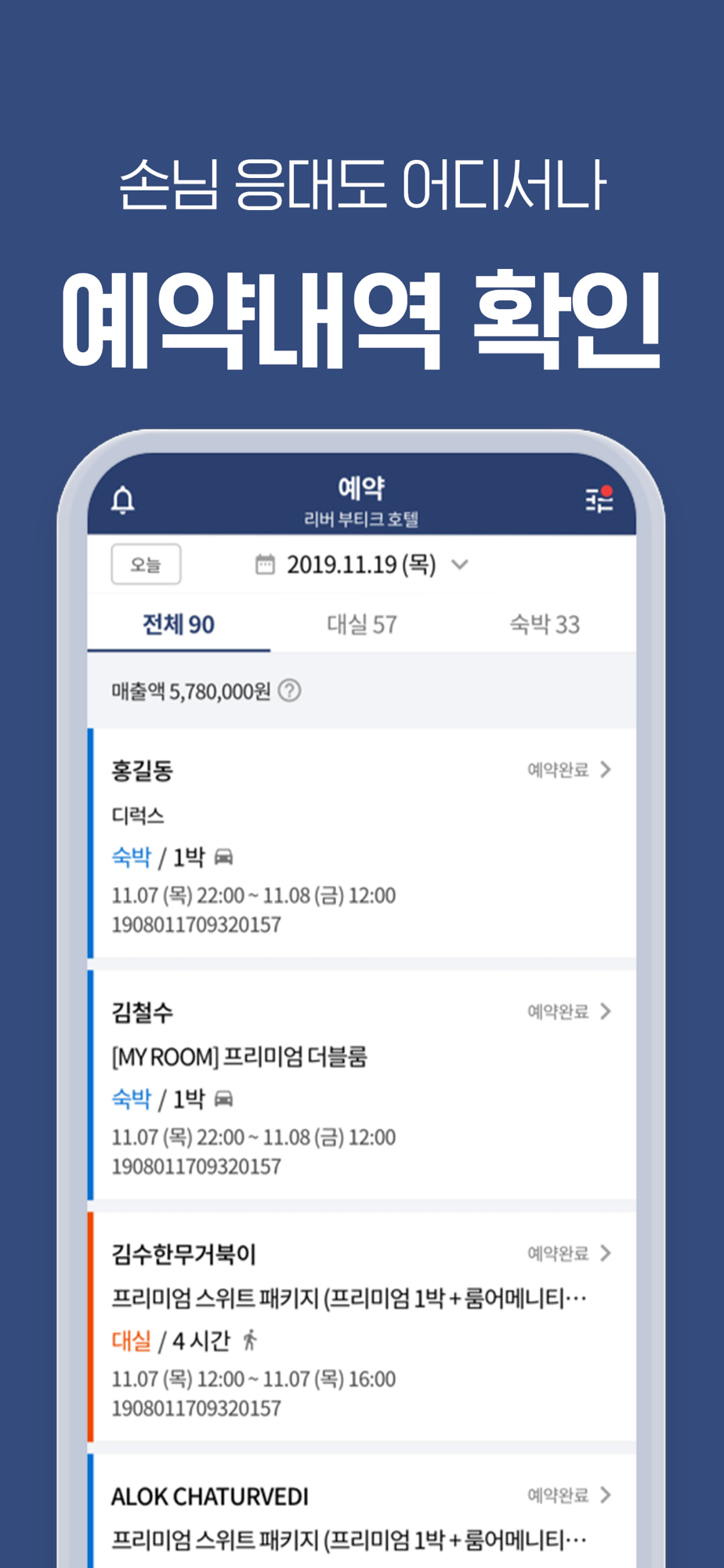 1. 예약 확인 : 입실손님을 날짜별로 확인할 수 있습니다.