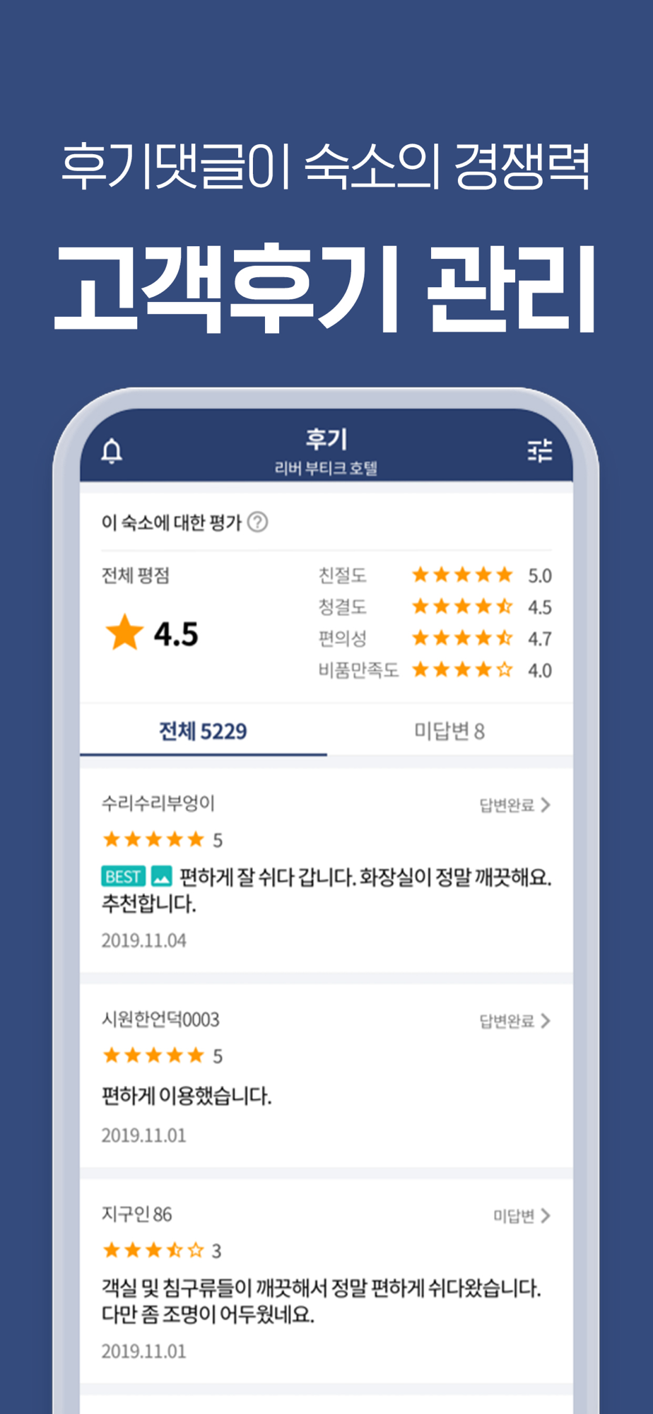 3. 후기 관리 : 후기를 확인하고, 댓글을 달 수 있습니다.