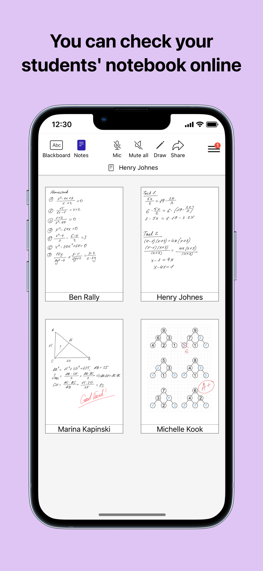 - Ability to check student notebooks by the teacher online