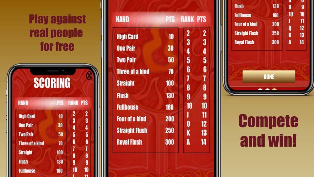 Play against real people for free then switch to cash games when you're ready to compete and win!
