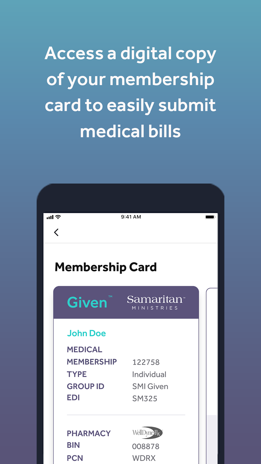 Samaritan Given is a new health care sharing program from Samaritan Ministries International. Members can manage their membership and share with one another entirely online. The program allows for easier, real-time member connections and has a membership card that allows providers to submit bills to Samaritan directly. Samaritan will then work to secure a fair price for shareable bills on your behalf. The Samaritan Given mobile app provides powerful ministry tools for a convenient member experience.