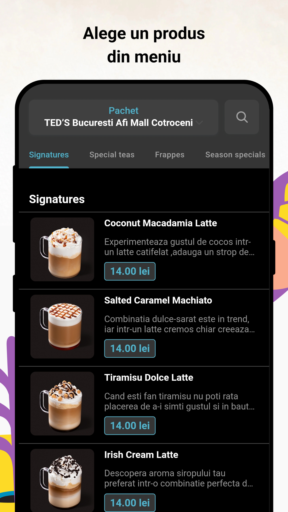 - Ai meniul mereu la indemana, astfel ca te poti rasfata in fiecare zi cu una din bauturile noastre.