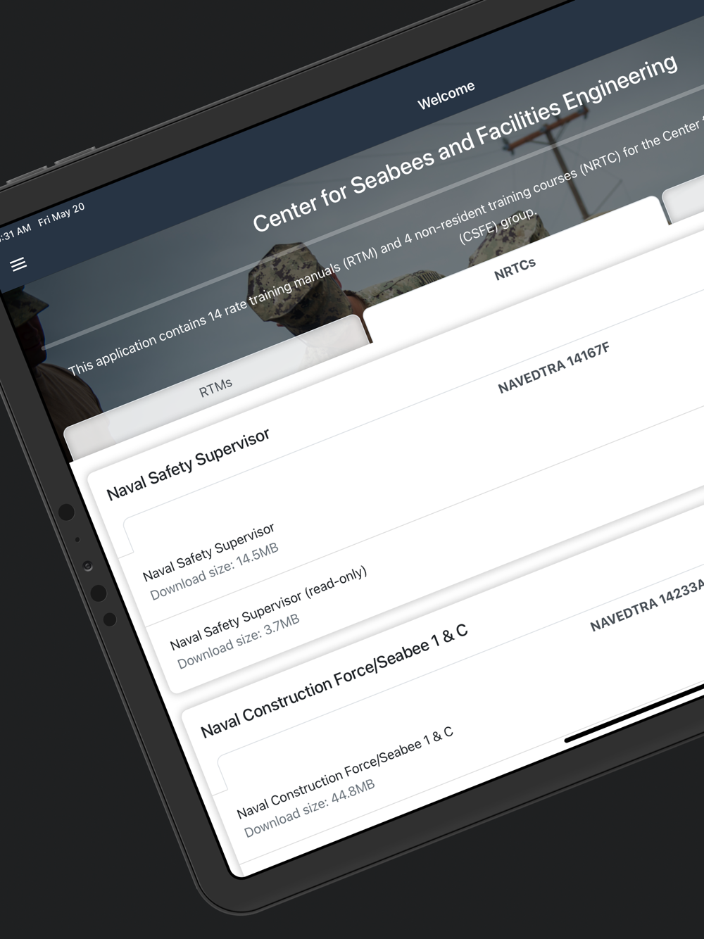 The Navy’s Seabees Rate Training Manuals (RTM) mobile application gives Sailors in seven occupational fields a convenient way to complete required basic and advanced training – anytime, anywhere.