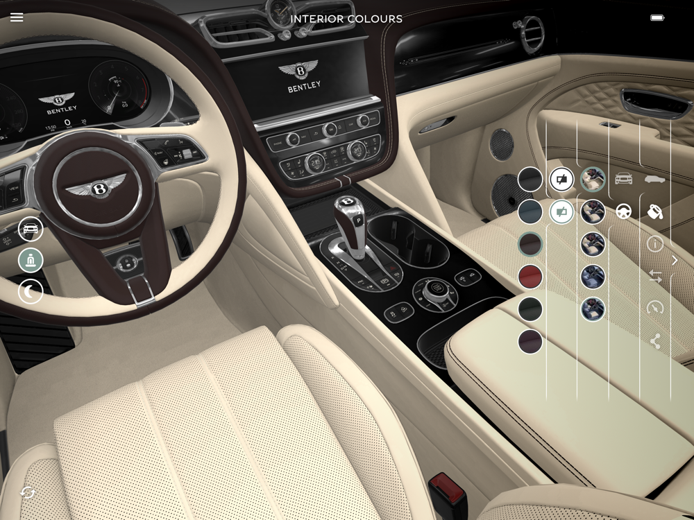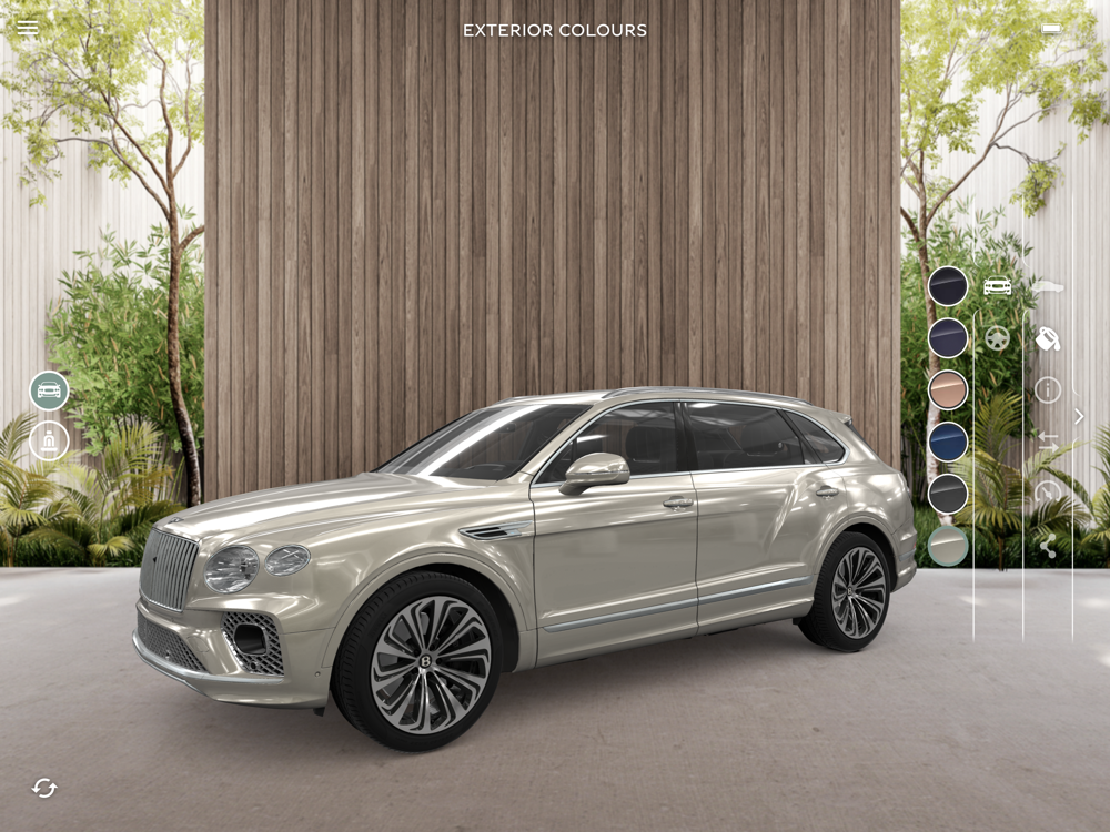 We attempt to keep all information on the Bentley AR Visualiser app up-to-date. The product specifications contained within the AR Visualiser, however, are for information purposes only. As we continually enhance our products, alterations in our models or standard or optional equipment may occur. We reserve the right to change these product specifications at any time without notice. For accurate up-to-date information, please contact your nearest or preferred Bentley Motors dealer.