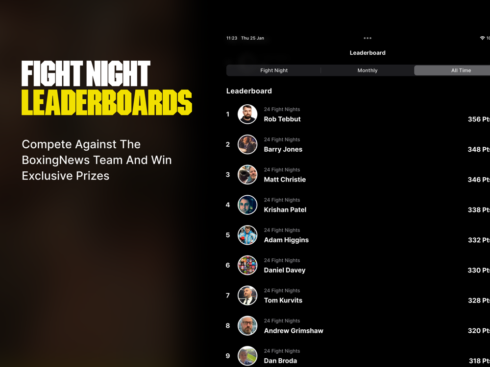 Compete against your friends with our Fight Predictor feature, where users pit their wits against fellow fans, friends and industry experts from across the boxing landscape. Predict the correct outcomes of fights and climb the Leaderboards for a chance to win exciting, unique prizes.