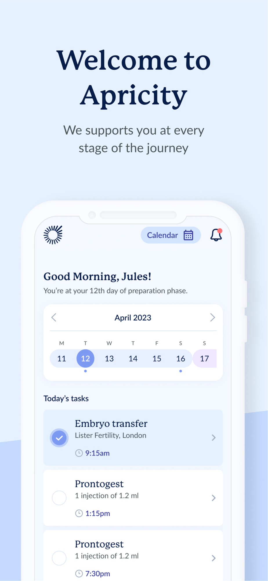 Apricity’s companion app is the companion for women and couples going through Assisted Reproductive Treatments. Our focus is to help you maximise your fertility treatment success by surrounding you with care and guidance every step of the way instead of dark and the unknown. Wouldn’t it be reassuring to have someone to guide you throughout your fertility treatment? With a fertility advisor to call upon in your companion app, you will be supported at every phase.