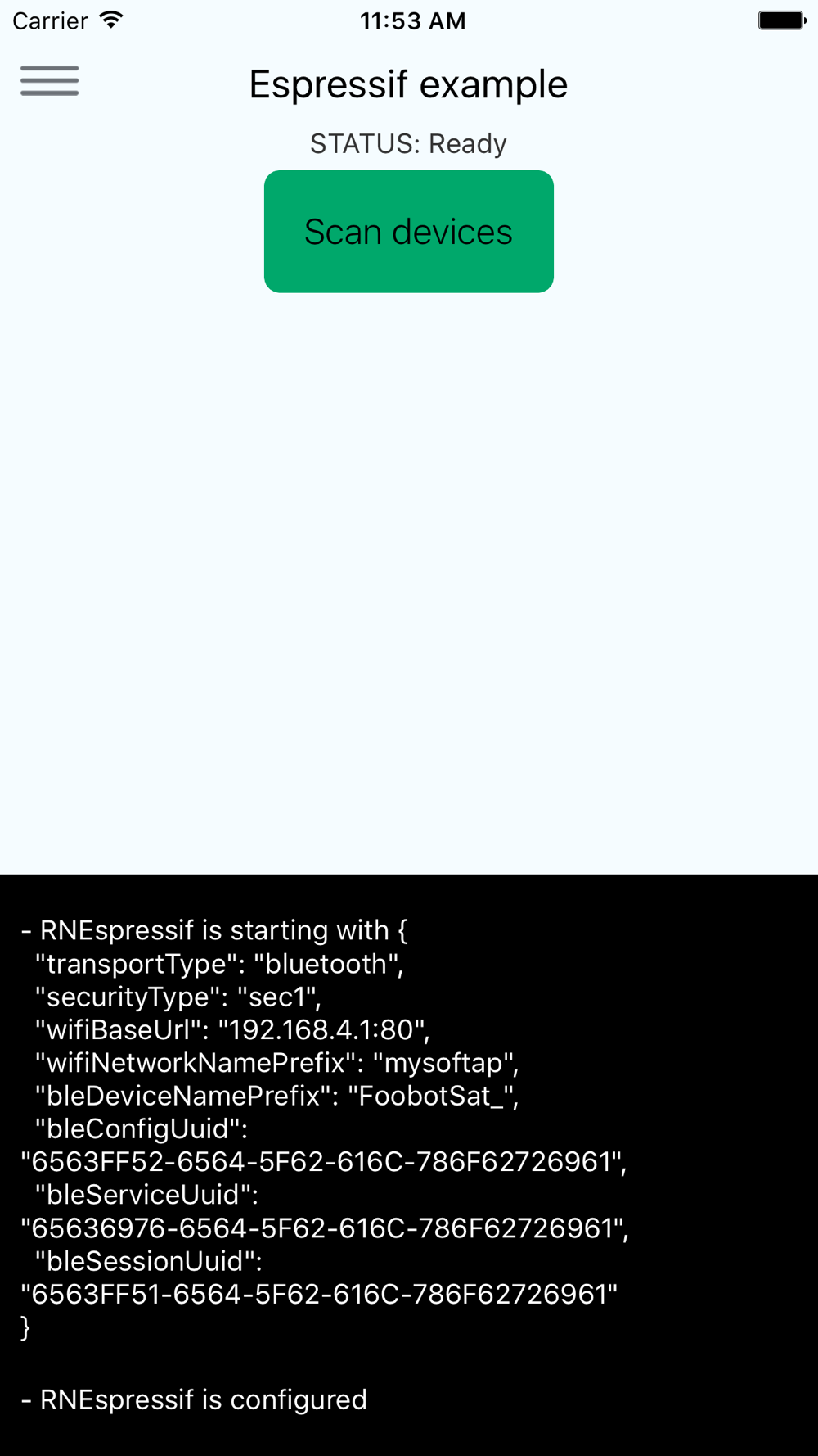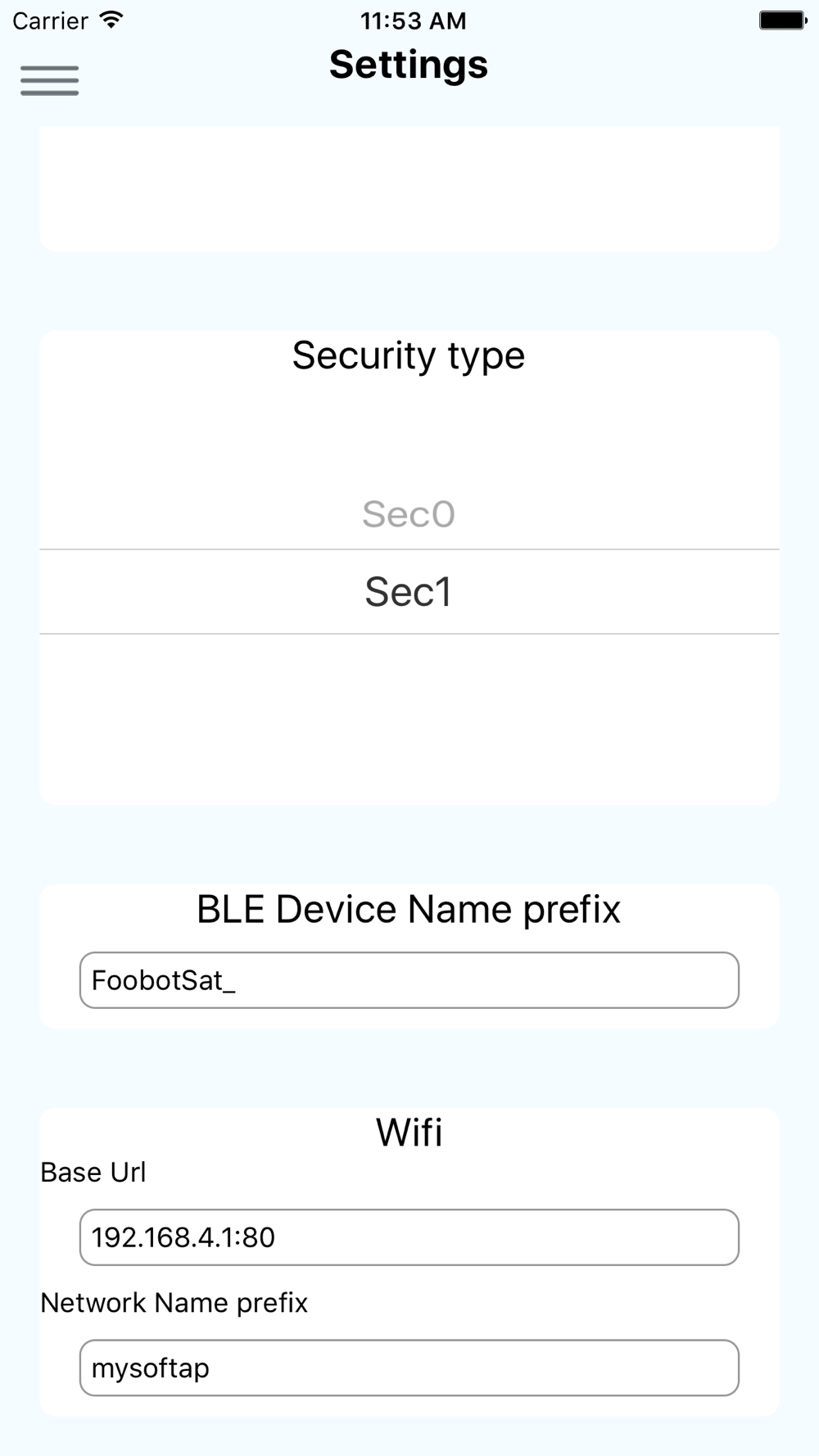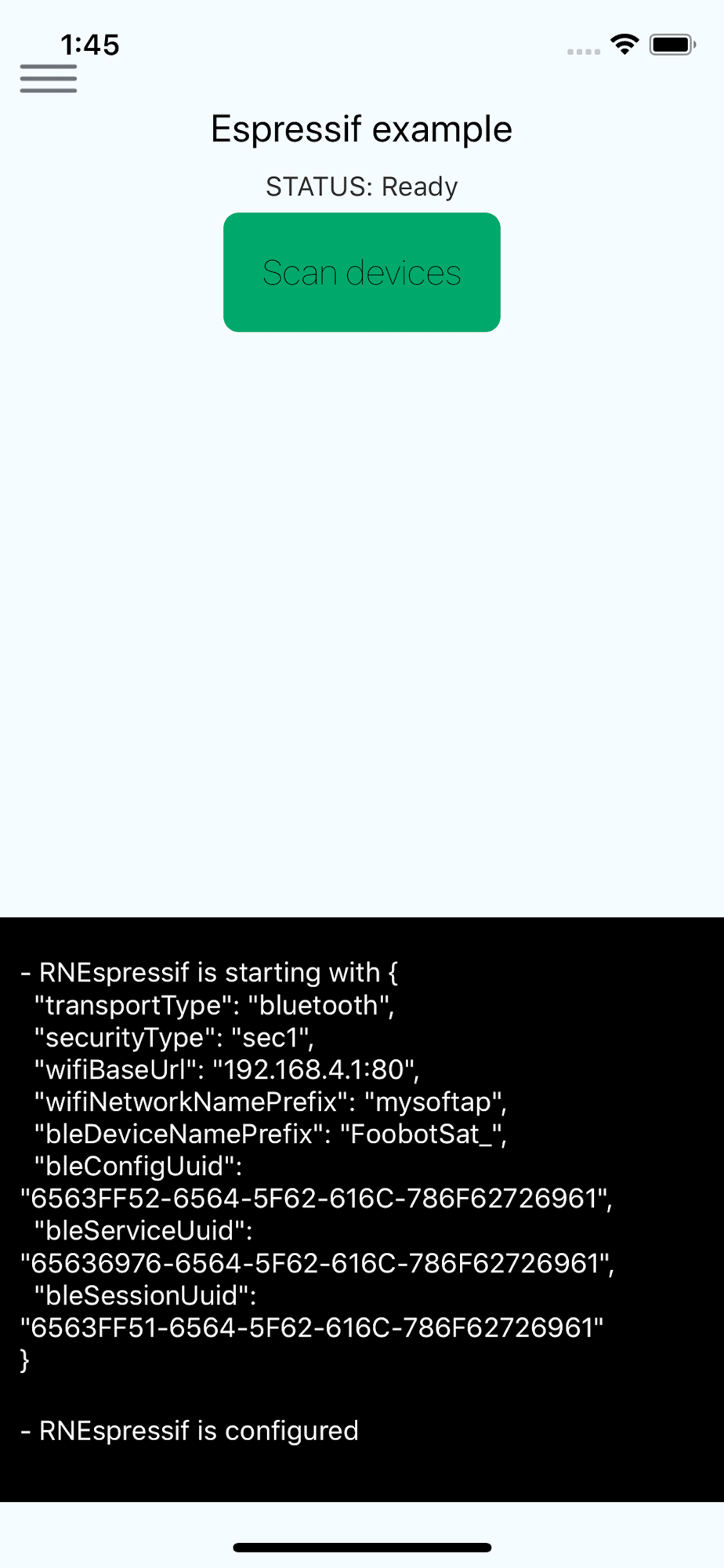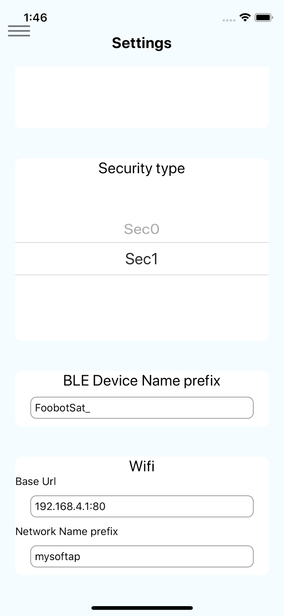 This app sends to a ESP32 device the SSID and passphrase to which the IoT device will connect to.