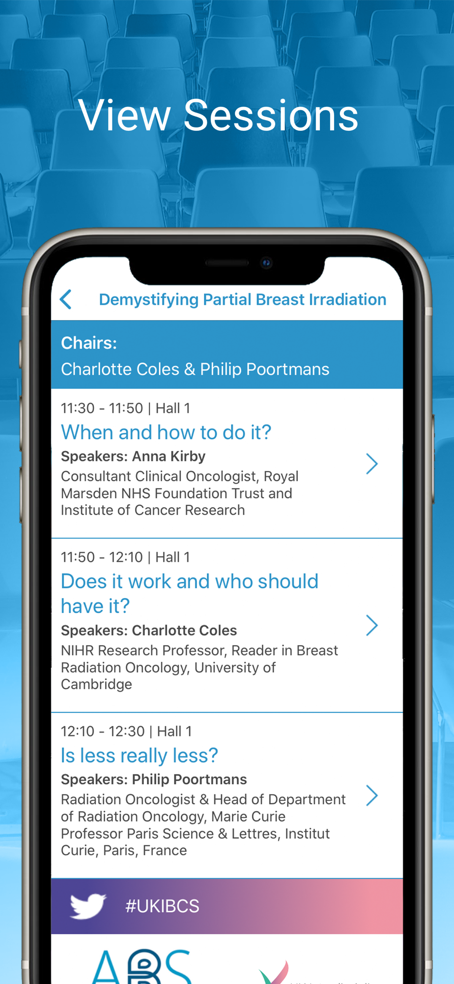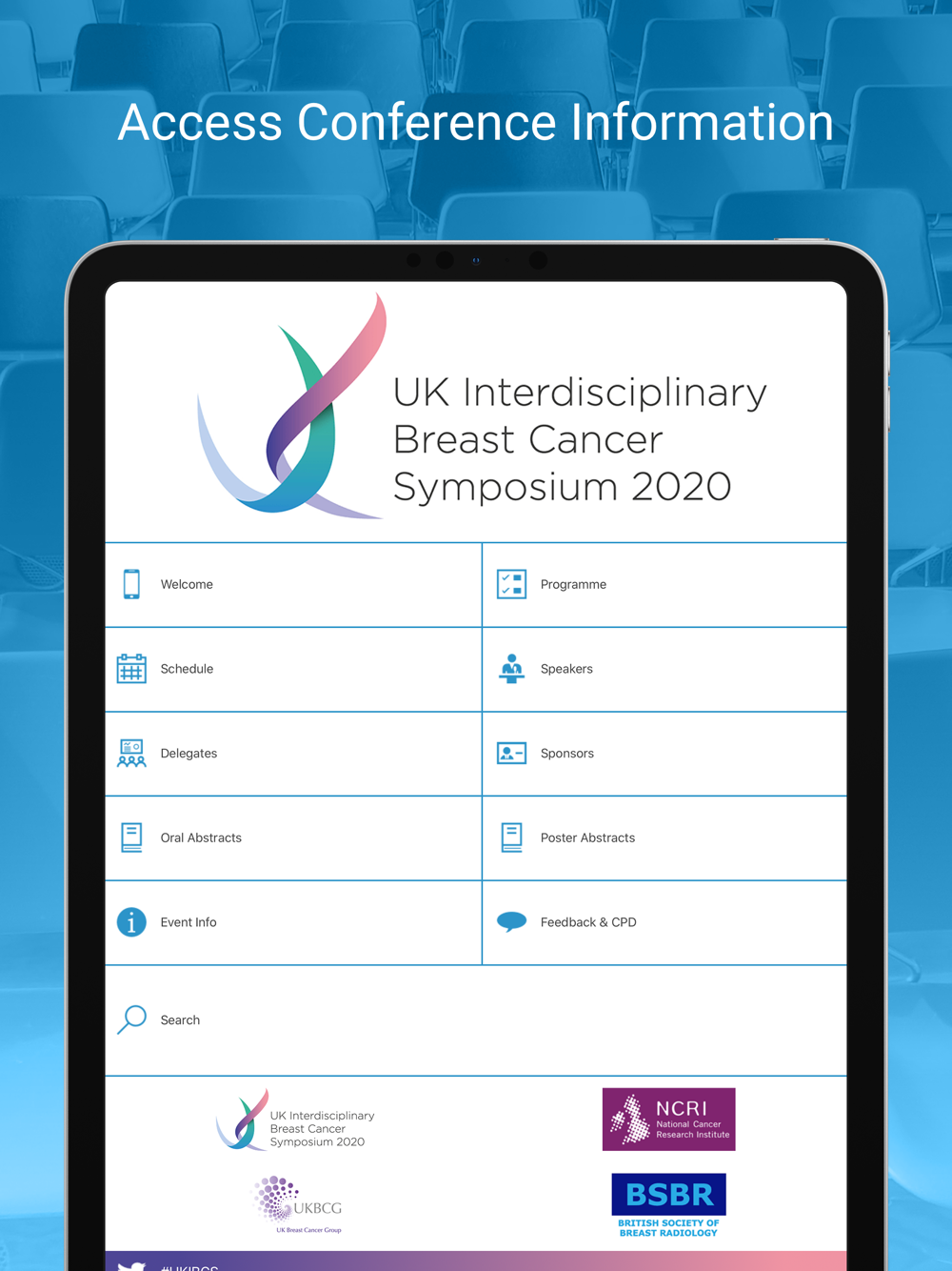 The UK Interdisciplinary Breast Cancer Symposium app allows users to easily access sessions and view more information about speakers. In the build up to the conference new information will be added to the app to keep users up the date.
