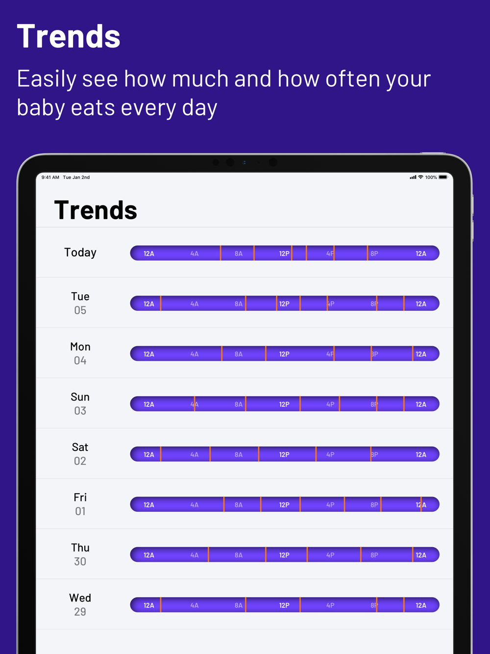 There are no timers to remember to start or stop, no complicated features that make the app hard to use. No in-app payments, no ads, just an app that works. As a mom with a newborn, you are already tired enough and don't want to spend too much time fiddling with unnecessary options and features. You just want to know when you last fed your baby, and which side the baby nursed from if you breastfeed (there is an option for bottle-fed babies). You can also synchronize all your data with multiple devices, including your partner's. All for free.