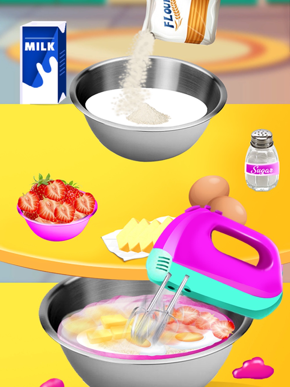 In this yummy and delicious sweet cake maker food game you can get your hands on craziest cake recipes with any fear of making your Mama angry and your kitchen messy. We will let you have dessert maker fun with us and learn to make the real cake.
