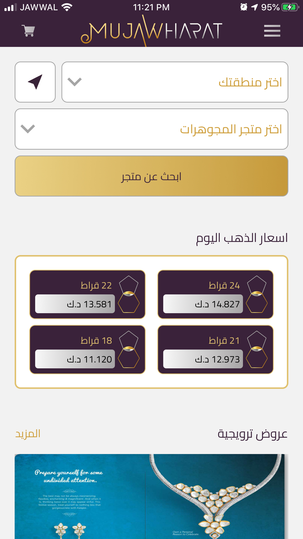 Mujawahrat is Kuwait's first application specialized in the local jewelry/gold market to provide the most accurate live gold prices and jewelry to order right from your phone.