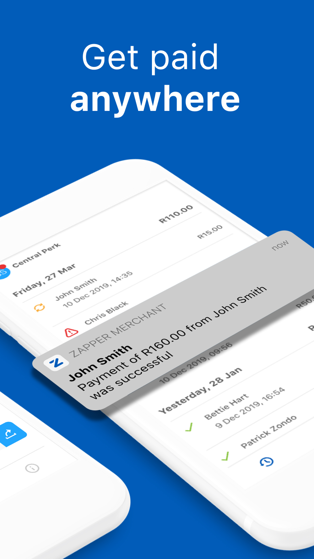The Zapper Merchant app conveniently delivers Zapper payment confirmations in real time. Forget about scrolling through days and weeks of SMS confirmations to reconcile.