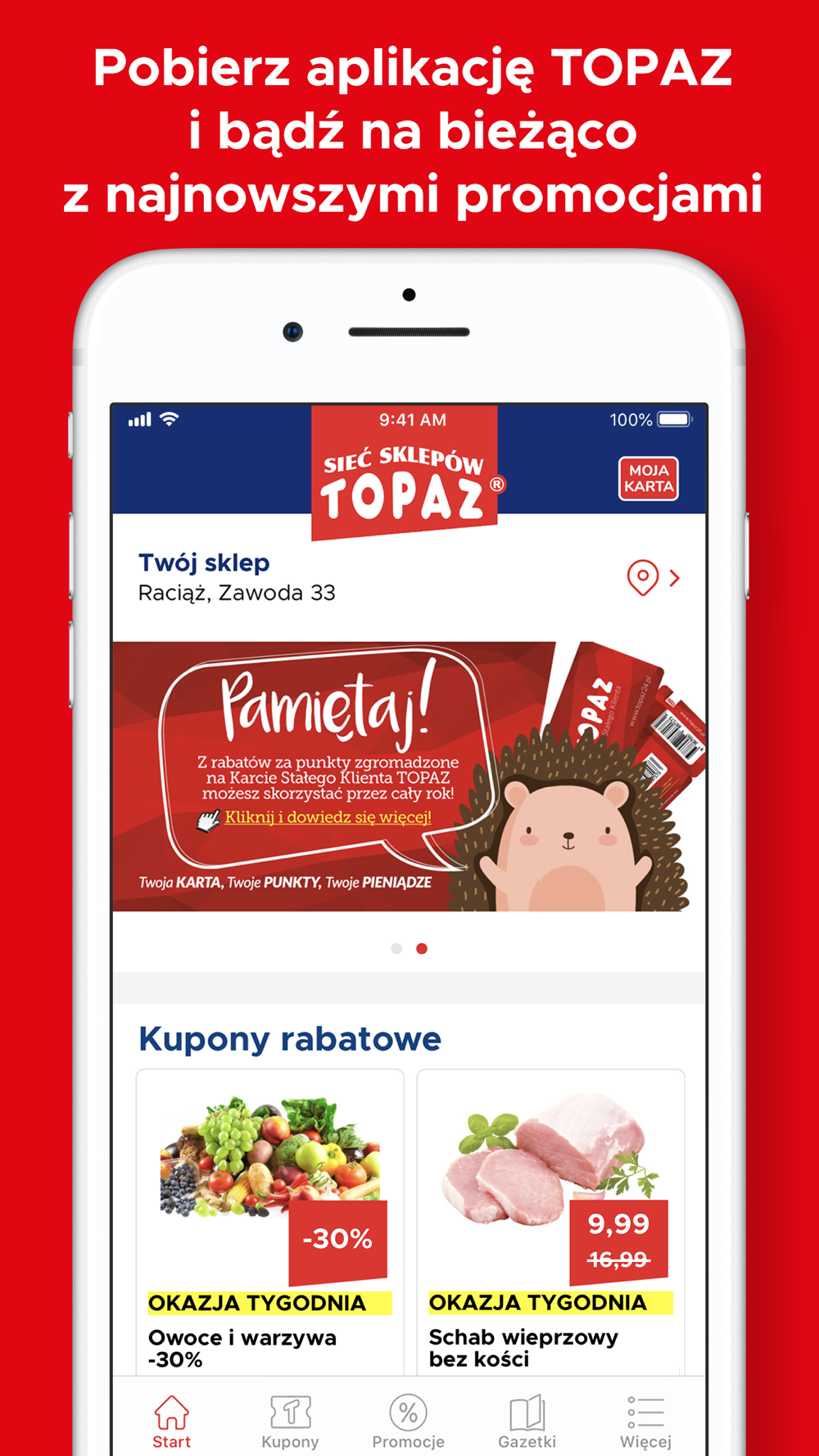 Zainstaluj aplikację polskiej sieci sklepów TOPAZ i przeglądaj najbardziej aktualne promocje, zainspiruj się ciekawymi artykułami oraz przepisami na pyszne dania. Ale to nie wszystko! Z aplikacją zawsze szybko znajdziesz najbliższy sklep i nie ominą Cię promocyjne oferty.