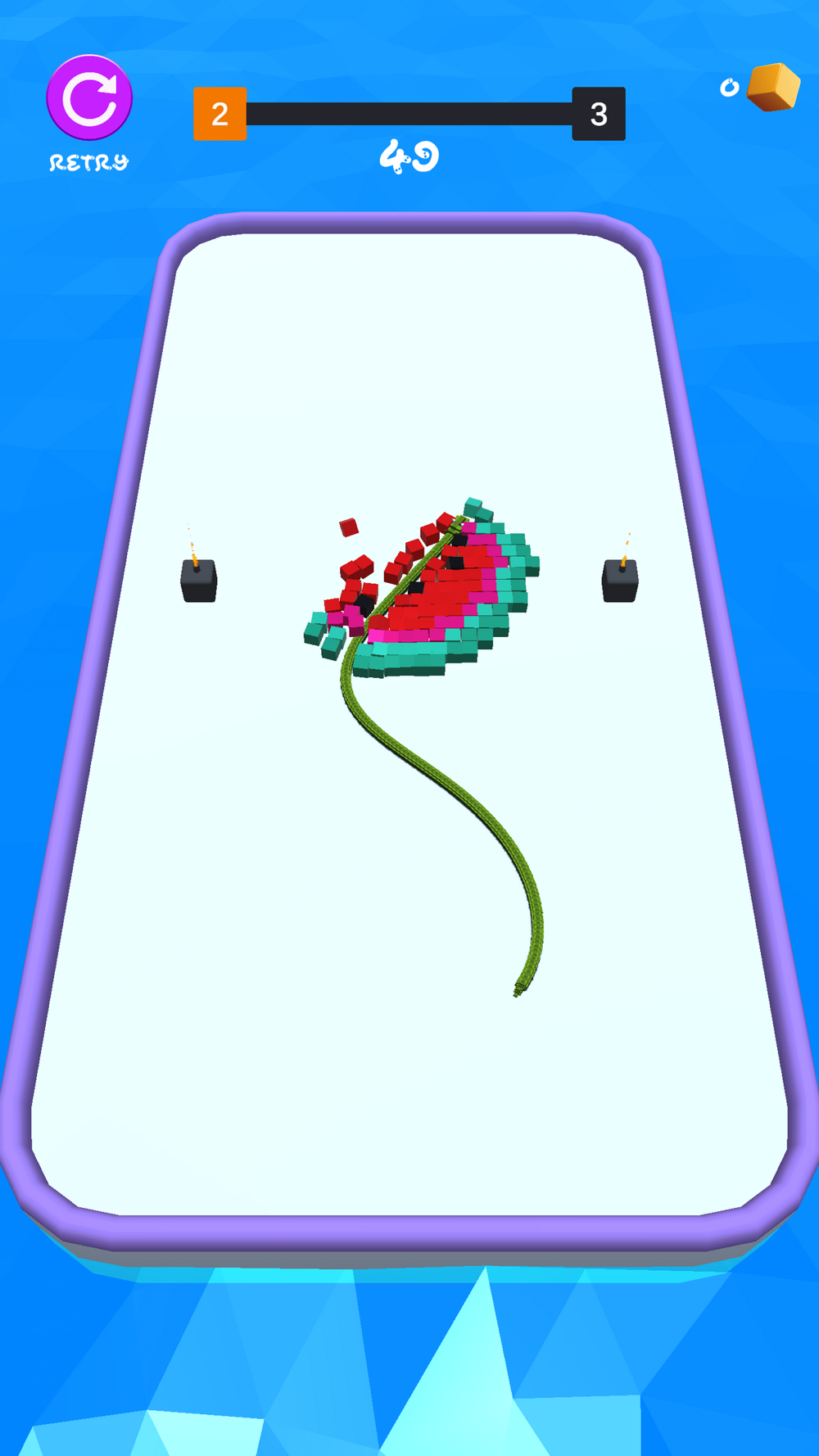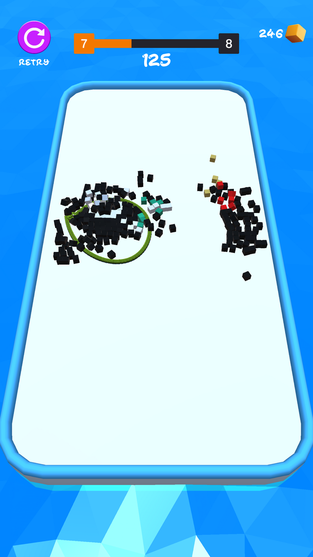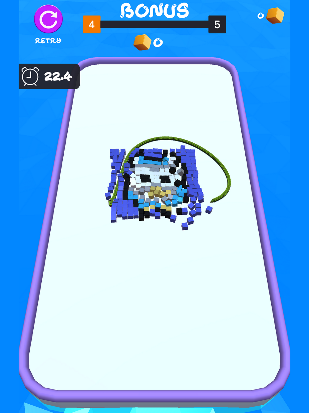 Combine the snake and destroy the cubes. Break all the cubes. Magnify the snake. Drag and merge with your finger.