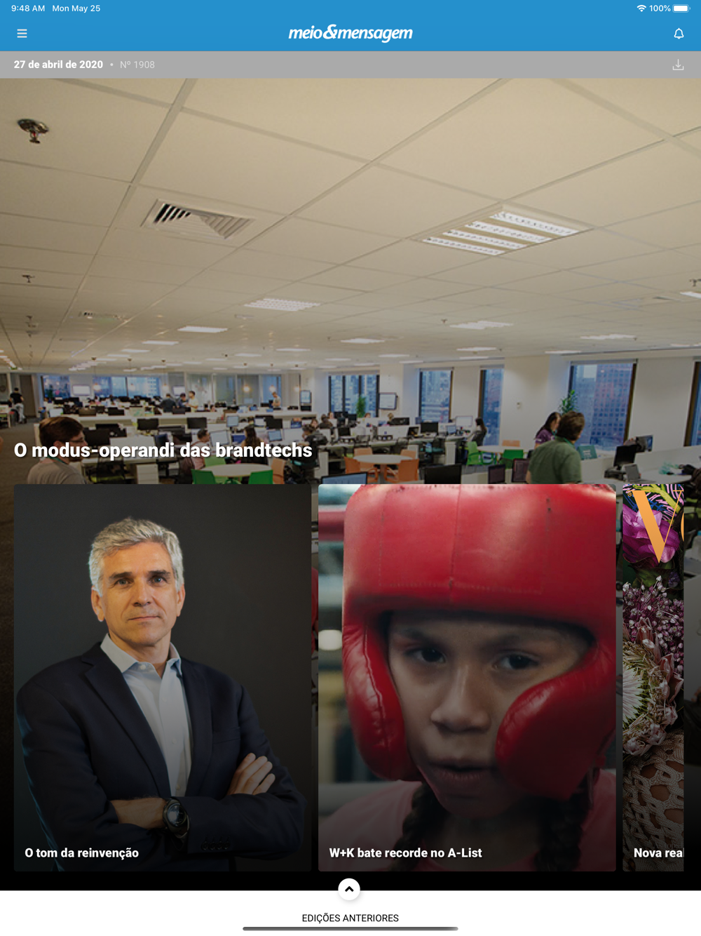 Nesta versão do app você terá acesso ao conteúdo das edições semanais do Meio & Mensagem na íntegra, mas formatado para ser lido na tela do seu smartphone sem necessidade de aumentar e diminuir a página. Uma experiência única.