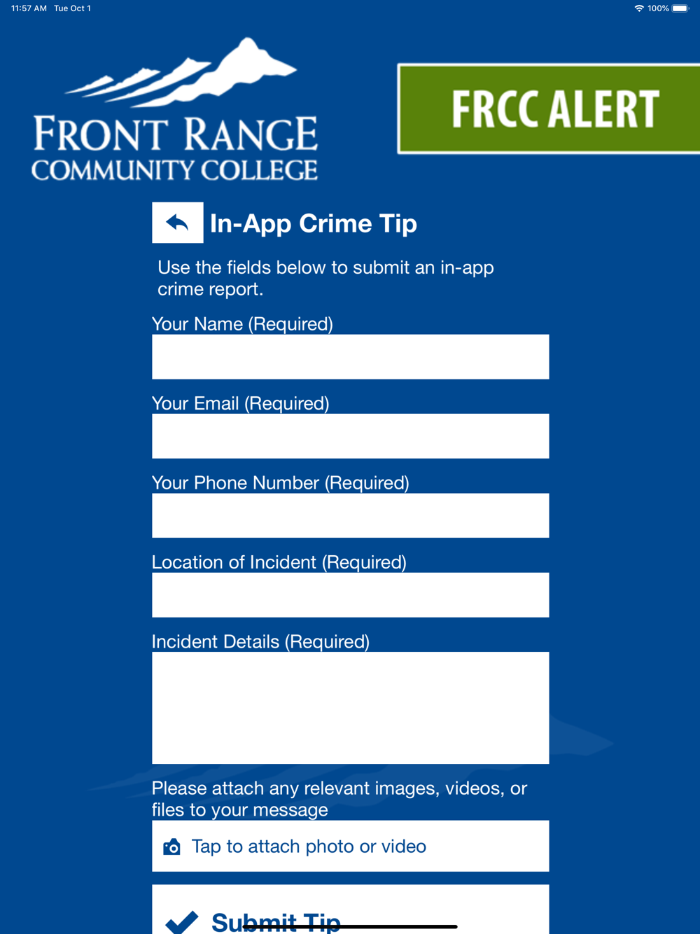 - Tip Reporting: Multiple ways to report a safety/security concern directly to FRCC security.