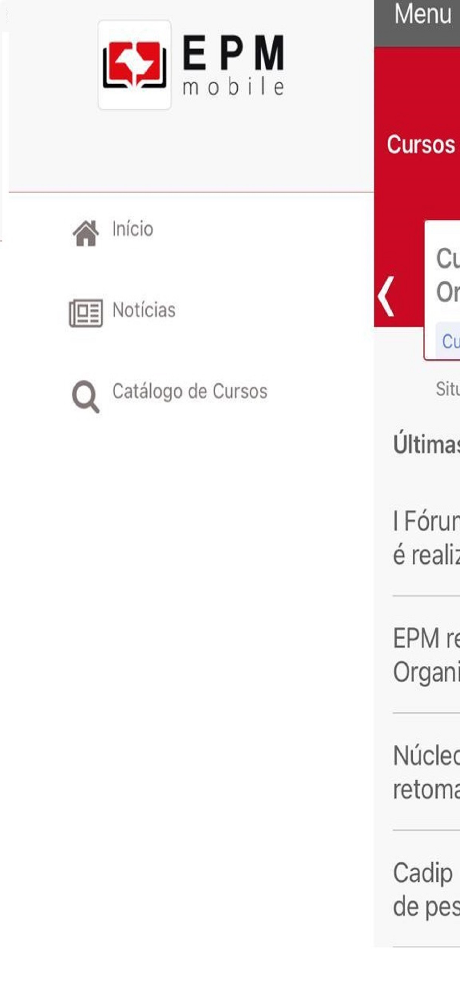 O aplicativo permite que o usuário tenha acesso a notícias e ao catálogo de cursos da EPM.