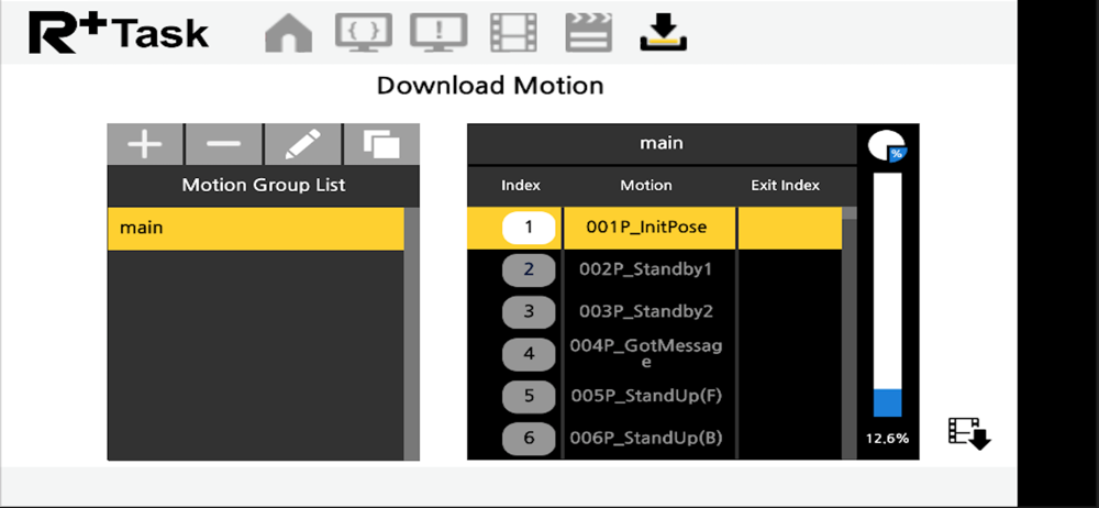 ROBOTIS R+ Task3.0 allows motion editing, task programming and download for educational robots; such as DREAM, SMART, STEM, ROBOTIS MINI, PREMIUM, ENGINEER.