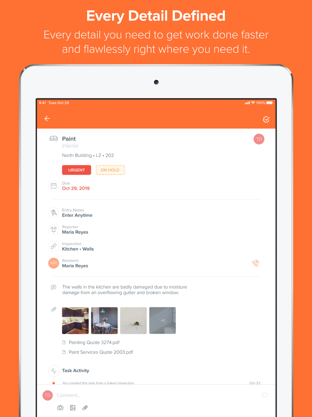 Tasks by HappyCo is trusted by the leaders in multifamily to organize work orders, identify issues needing attention, and delegate jobs to the most qualified maintenance technician. With powerful documentation options, communication, and automatic updates, Tasks removes delay and unnecessary work from your workflow.