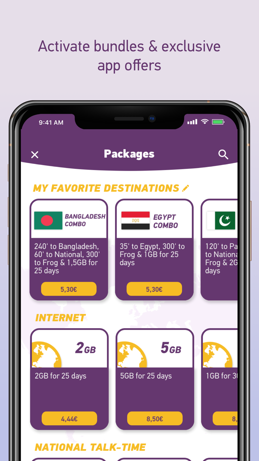- Set your Favorite Destinations in order to easily browse packages for the countries you communicate the most!