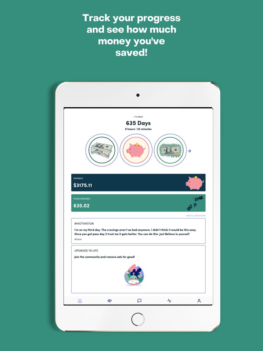 Are you ready to quit vaping? Ain't no motivation quite like saving money and, of course, your life! Kick the addiction, improve your health, and spare your wallet (cha-ching!). This app tracks the number of days your lungs are smoke-free and how much money you have saved so you can put those dollars toward something better! New shoes, perhaps? Your degree? Extra guac?