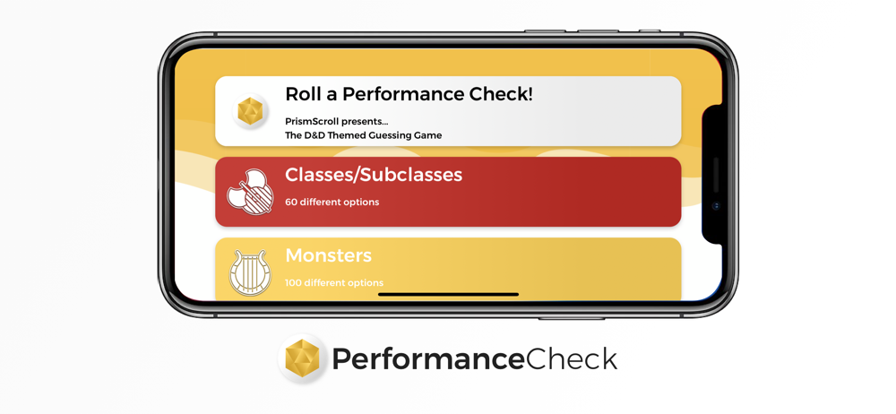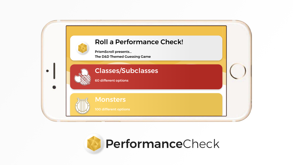 Need some fun games to play before your sessions? Want to test your Dungeons and Dragons knowledge? Then Performance Check is the app for you! Warm up your roleplaying skills in our group guessing game or test your knowledge in Dungeons and Dragons trivia!