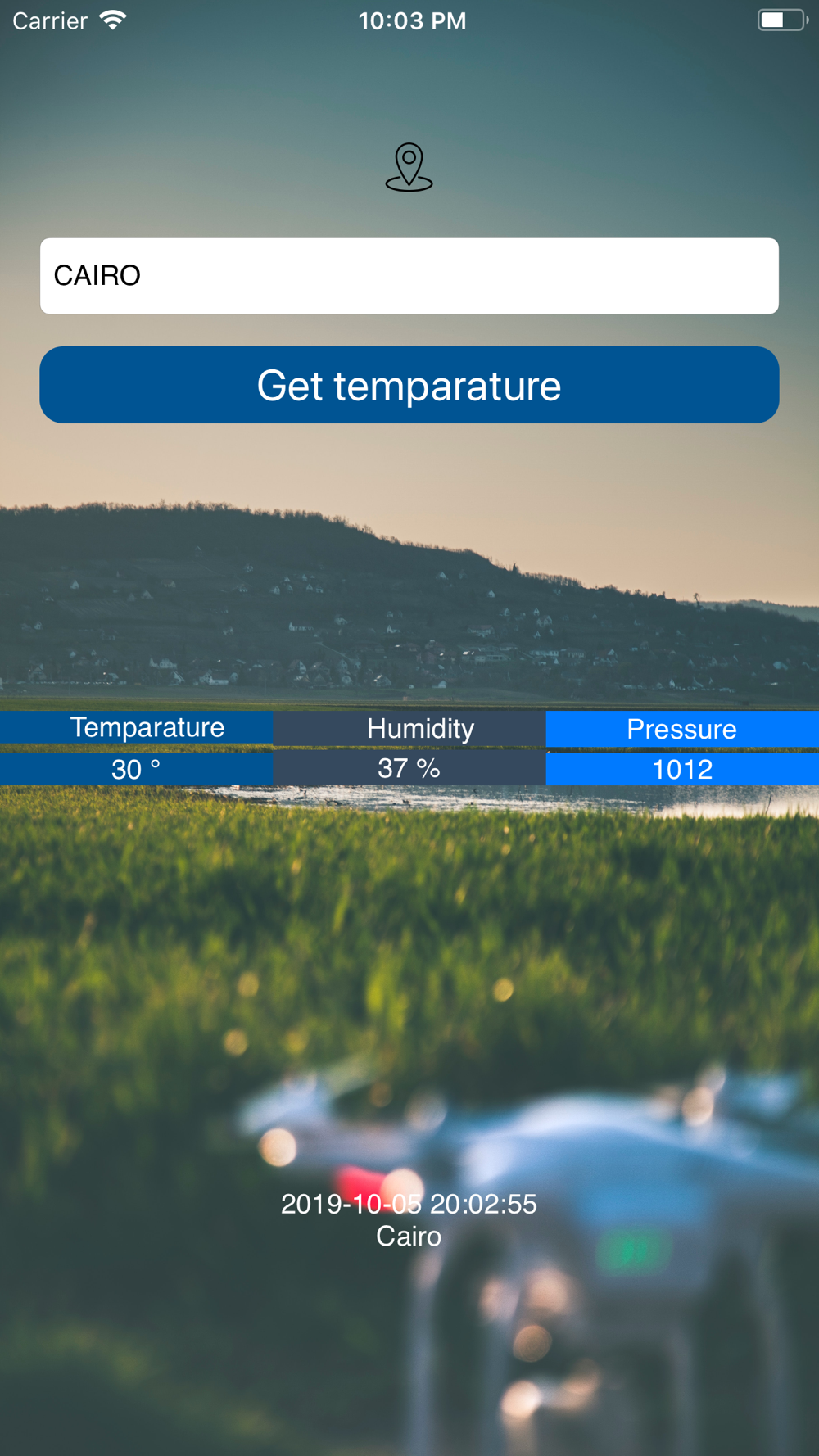 The application is used to get temperature of different cities and get the temperature of the user location. Additionally, the application supports the user with humidity and pressure. in addition to this, the application displays the time in the entered city.