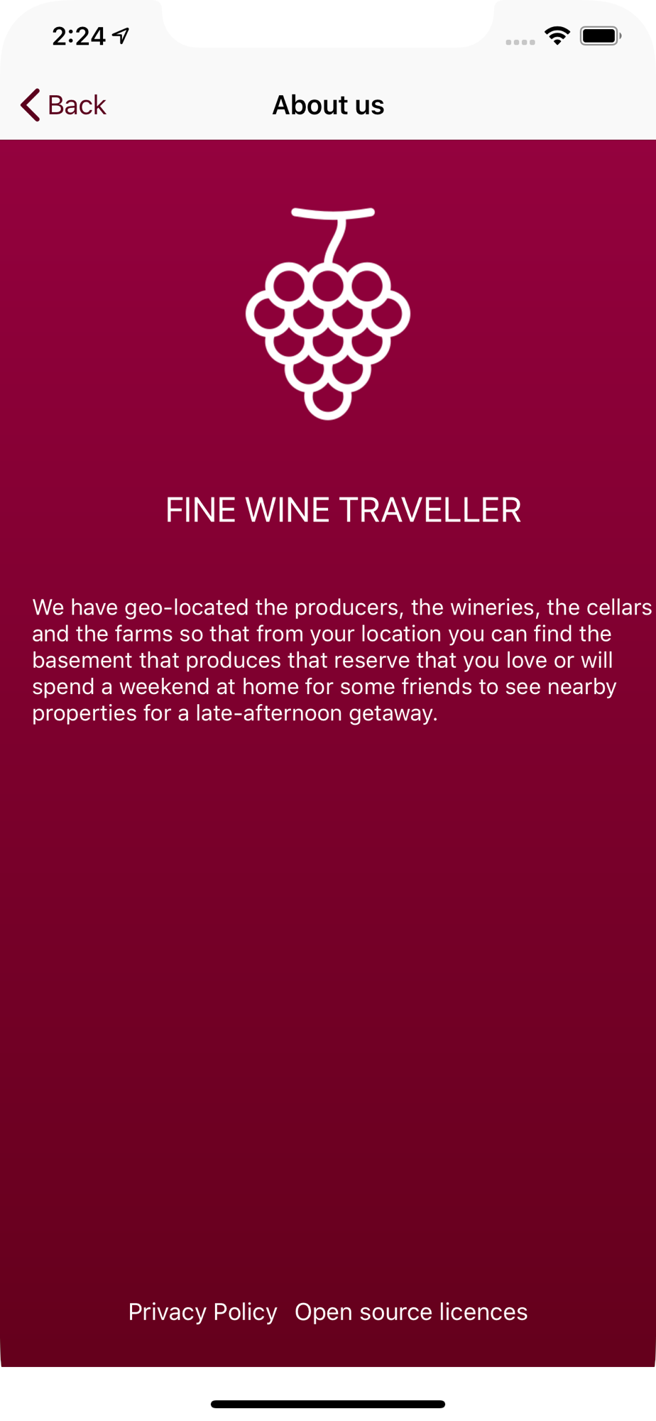 Com esta App pretendemos facilitar a sua busca dos melhores e mais próximos locais onde possa conhecer e disfrutar os melhores vinhos que Portugal tem para oferecer.