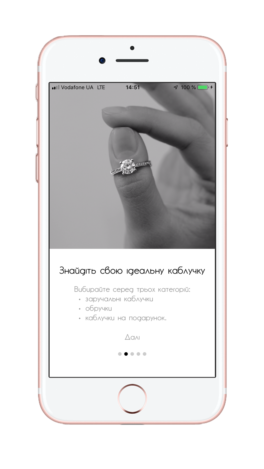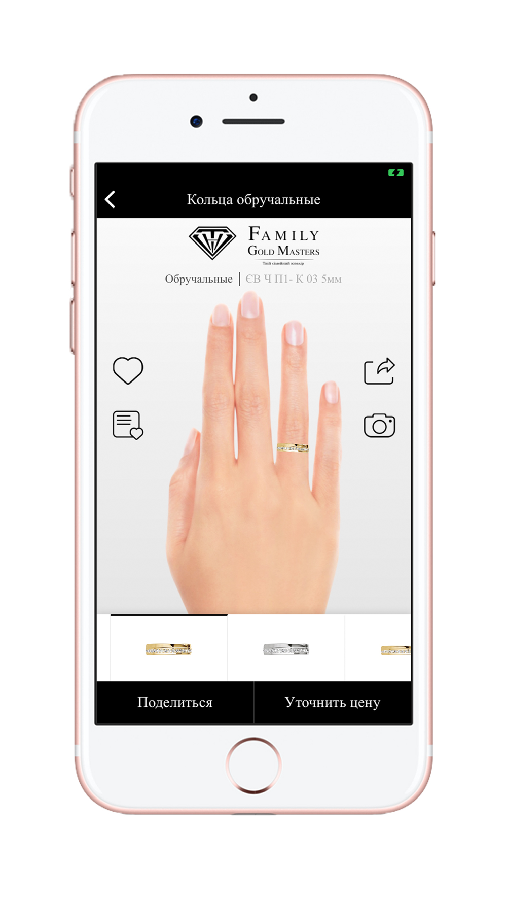 У додатку FGM Ви відкриєте для себе безліч обручок та каблучок , а використовуючи фотографію своєї руки є можливість приміряти каблучку, яка Вам сподобалась, і задати будь-яке питання або ж записатись на консультацію до ювеліра.