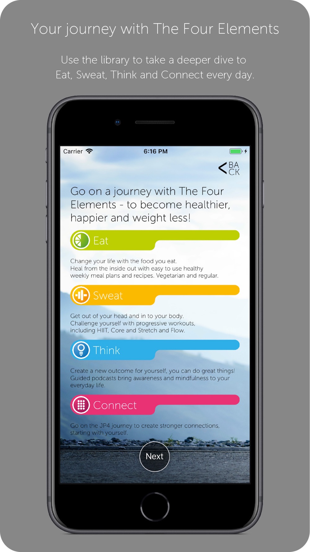 JP4 is a premium 12 week personal health and fitness transformation program which users can select a regular or vegetarian meal plan option. Please note that the app will not operate unless you purchase one of the program options.