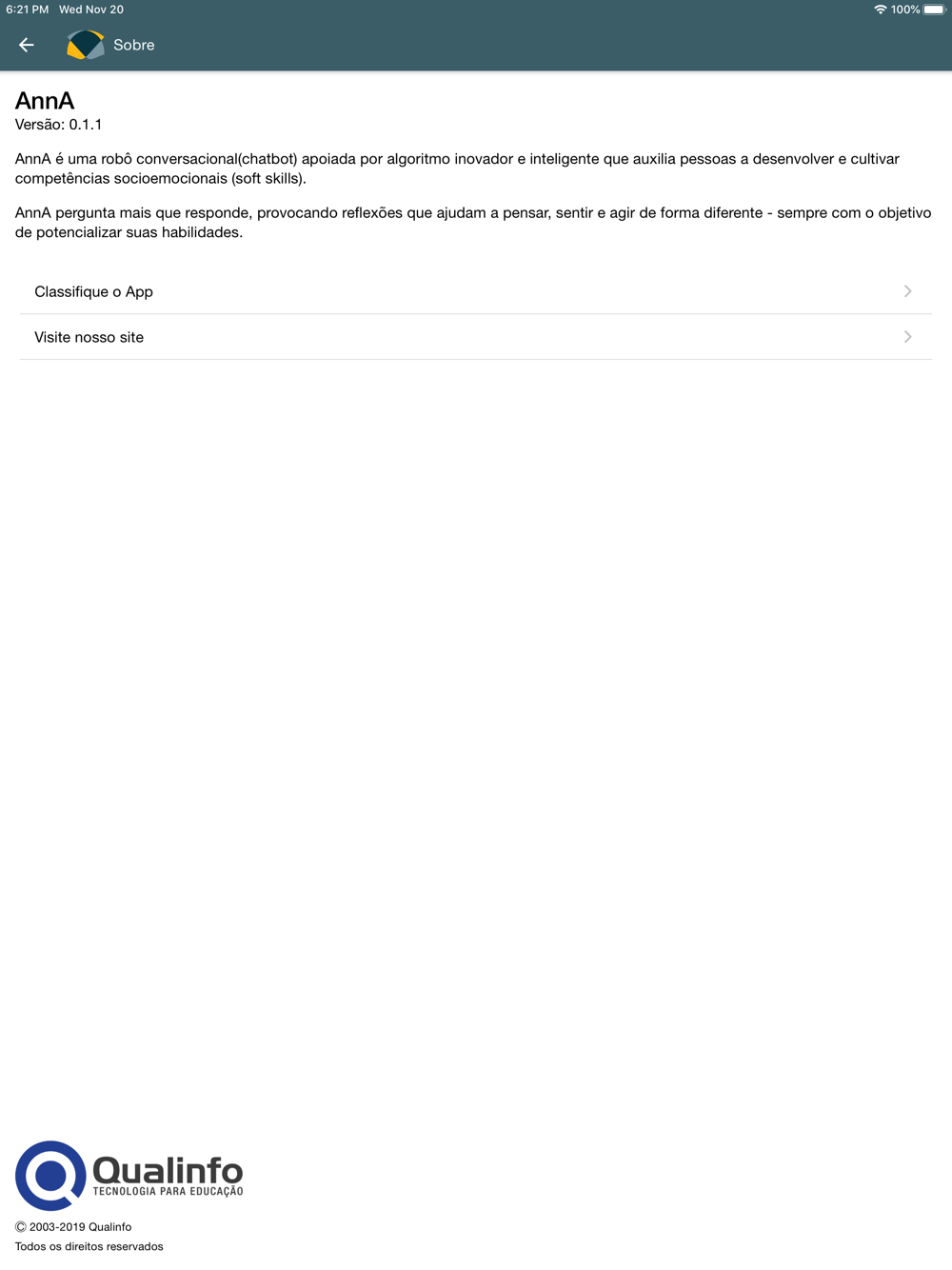 AnnA é uma assistente de aprendizado, apoiado por computação cognitiva, que auxilia pessoas a desenvolver competências socioemocionais. O objetivo é motivar, engajar, incentivar e promover jornadas cognitivas e experiências transformadoras que cultivem hábitos positivos e permanentes, que mantenham o colaborador alinhado com a empresa em que trabalha.
