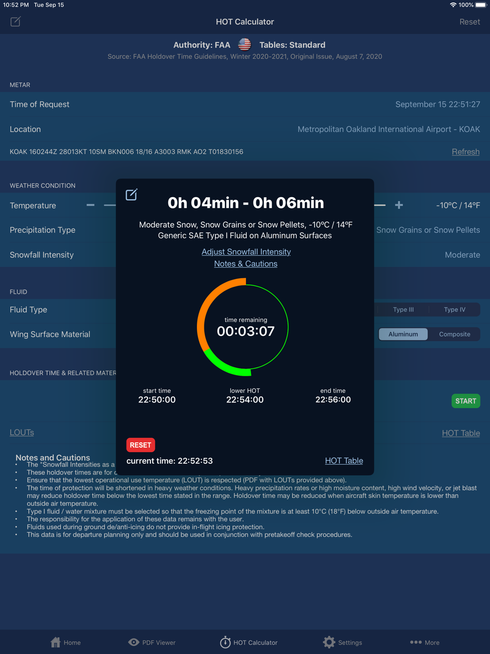 • CHANGEABLE SETTINGS: Customize your authority, HOT table type (standard or adjusted), HOT alerts (lower, upper, both) and time zone (local or UTC). Enable or disable METAR functionality. Choose your colour scheme, with light and dark modes, using the themes setting.