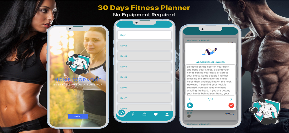 The application is simple. It gives you a 30 days plan to perform on daily basis with specific set of exercises. As you go along with the days, you will see the improvement in your fitness. The body will start to get in shape and you will start improving on your stamina and strength.