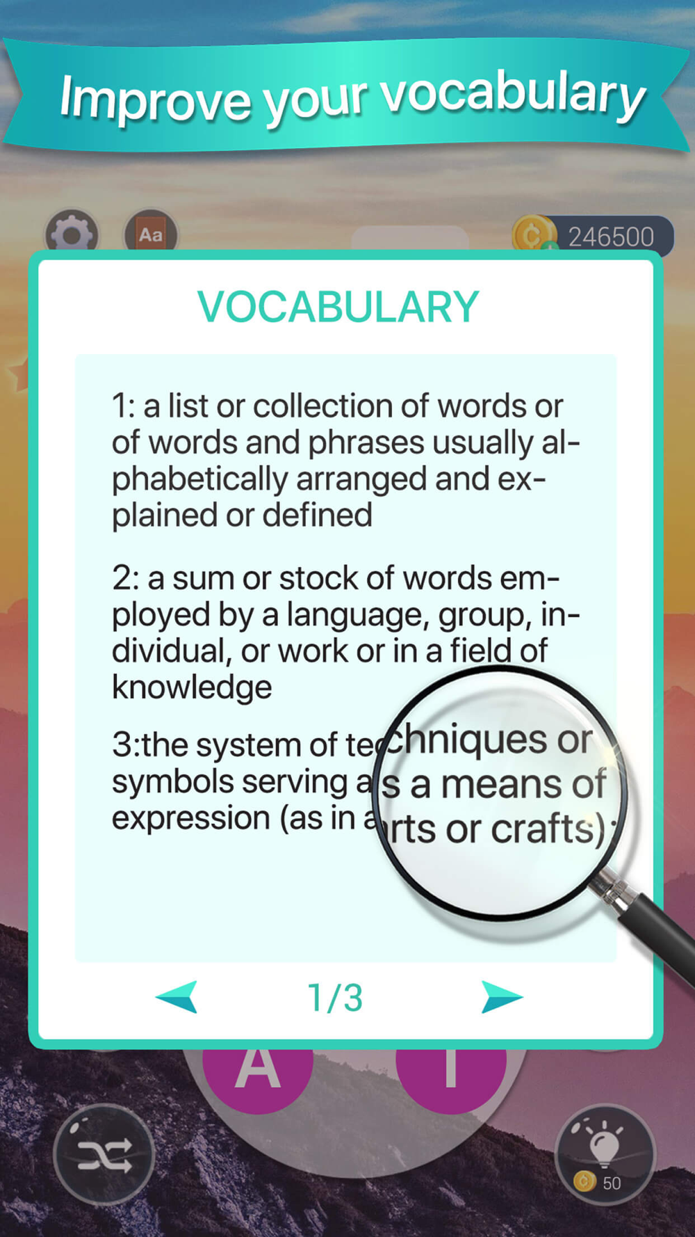 > Collect bonus word to earn extra coins!
