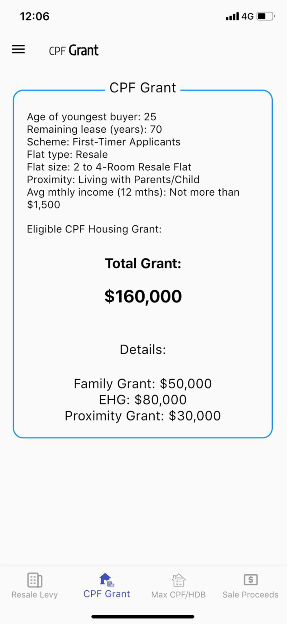 - EC/HDB. Calculate resale levy, provide latest CPF housing grant information (Sep 2019), maximum CPF usage and sale proceeds (May 2019).
